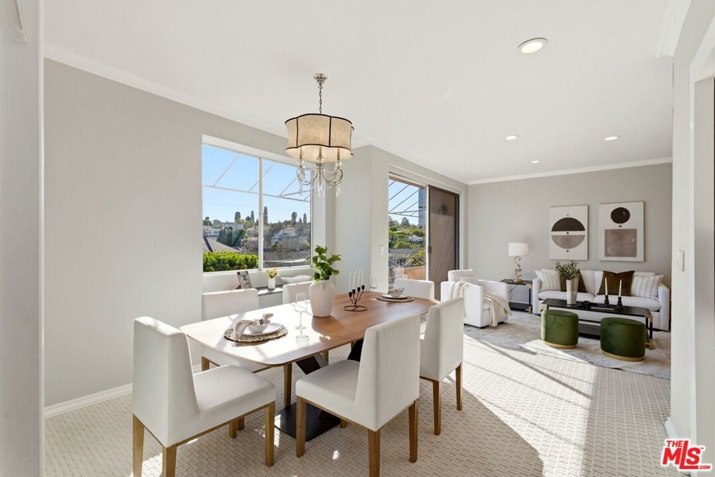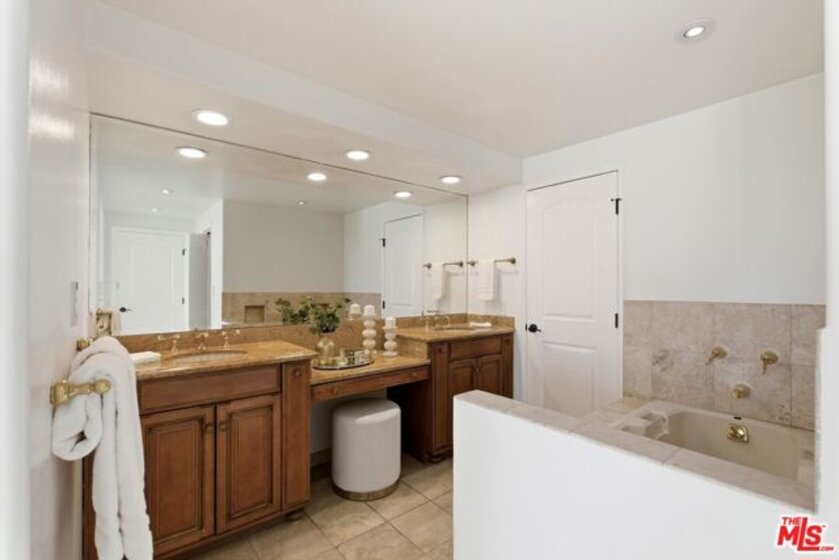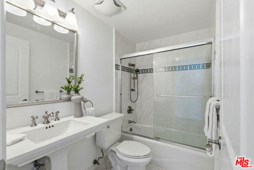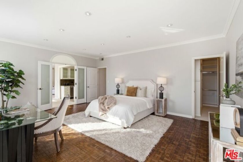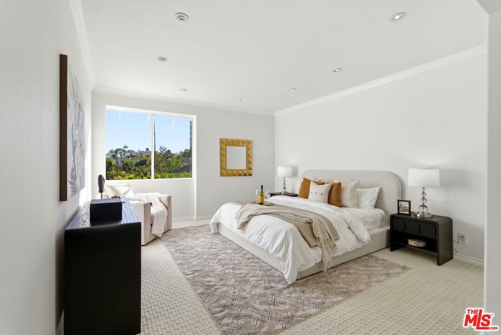 Filled with ample natural sunlight, this top-floor 2 bedroom, 2 bathroom condominium offers an exceptional blend of space, comfort, and location. One of the largest units in the building, the home features double entry doors, high ceilings and a thoughtfully designed floor plan with the bedrooms positioned on opposite sides, providing ideal privacy and functionality. The well-appointed kitchen includes two large custom pantries and additional storage spaces, making it both practical and spacious for everyday living. The bright living areas are enhanced by the top-floor position, creating an airy and welcoming atmosphere throughout. Additional highlights include in-unit laundry and two side-by-side parking spaces, an extremely rare and valuable feature in the building. Residents enjoy a wide range of amenities with HOA dues covering water, trash and recycling, internet, Spectrum premium cable, earthquake insurance, weekly landscaping and gardening, and an on-site building manager. The building also offers excellent amenities including a pool, jacuzzi, sauna, and gym, all within a well-maintained condominium community. Located just moments from Roxbury Park, the property is centrally positioned near Beverly Hills, Century City, and the Westside, with convenient access to shopping, dining, and entertainment. The home is also very close to numerous houses of worship, making it an especially desirable location for many buyers.