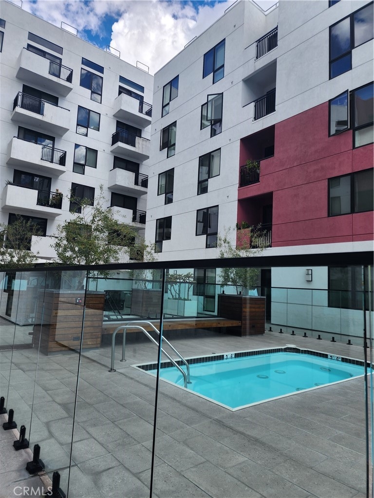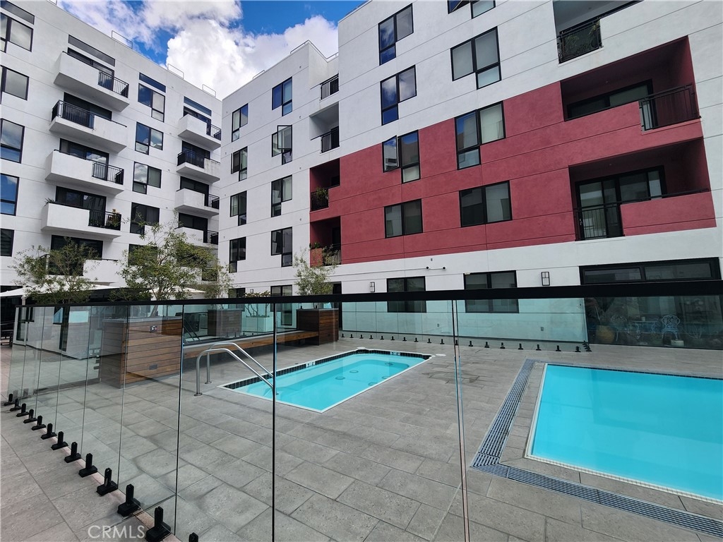 Experience urban living at its finest in this expansive loft boasting an open floor plan, soaring ceilings, and a versatile layout comprising 1 bedroom, 1 bathroom, plus a flexible space ideal for various uses. The generously sized kitchen and living area provide ample room for relaxation and entertainment, with the potential to convert part of the living space into an additional office or second bedroom. Situated within the prestigious VERO building, this end-unit condominium offers access to upscale amenities and services, including a 24-hour guarded lobby, while custom built-in shelves create a stylish entertainment center in the living room. Large windows flood the interior with natural light, complete with an ensuite bathroom featuring a dual vanity and soaking tub, from the rest of the living space. And the unit includes its own AC system and washer/dryer hookups. Parking is provided for two vehicles in tandem, with additional guest and retail parking readily accessible within the building. Enjoy tranquil views of the pool and effortless access to a wealth of amenities, including a heated pool, sauna, yoga/dance studio, fully equipped gym, BBQ facilities, fire pits, and attentive front desk security. This residence offers unparalleled convenience, with quick and easy access to major freeways, the Downtown Financial District, shopping centers, Koreatown, Chinatown, Echo Park, Silver Lake, USC, and an array of fine dining establishments. Nearby transportation options include Metro and Amtrak stations, while entertainment destinations such as LA Live, Crypto.com Arena (formerly Staples Center), Hollywood Bowl, The Greek Theatre, Griffith Observatory, The Wiltern, SoFi Stadium, LA Philharmonic, MOCA, the Arts District, Little Tokyo, and more are within close reach.