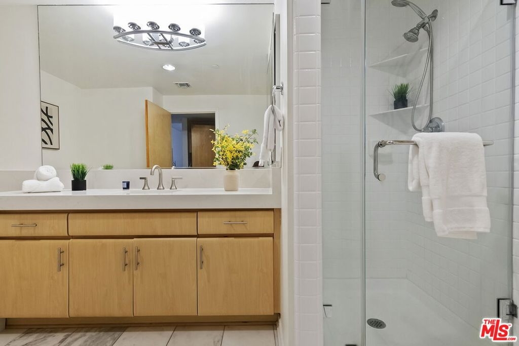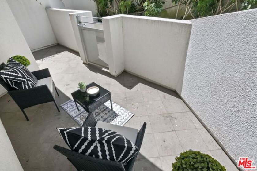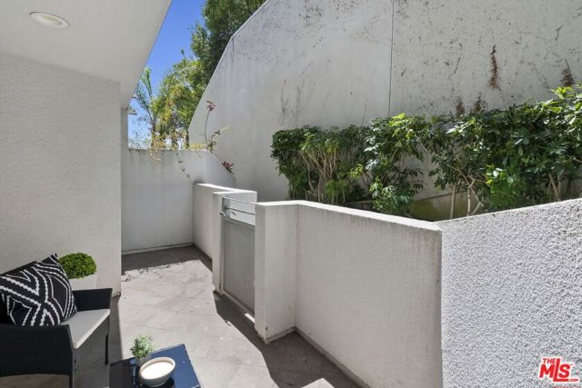 Located in a desirable central Brentwood location, this private and well appointed 2-bedroom, 3-bath townhouse style condo offers a spacious, comfortable layout spanning 1,576 square feet. The upper level features an open-concept design with a modern kitchen equipped with stainless steel appliances, a dedicated dining area, and a generous living room with marble floors, city and mountain views, a gas fireplace, and a large guest powder room. A sun-drenched glass-enclosed bonus space makes the perfect office or reading nook. Downstairs, both bedrooms offer privacy and comfort. The expansive primary suite includes a sitting area, two closets (including a walk-in), and en-suite bath with a soaking tub and separate shower. The second bedroom also enjoys its own full bath. This level also includes a side-by-side laundry area, extra storage, and direct access to a private outdoor patio. Additional amenities include Nest thermostats on each level, side-by-side parking spaces, ample guest parking, and a dedicated storage cage. There are dual entrances, one on each level, providing added flexibility and convenience for daily living, guests, or a work-from-home setup. The secure building offers resort-style living with a pool, spa, sauna, and gym. Ideally located near UCLA, the 405, top-rated schools, and Brentwood's premier shops and dining.