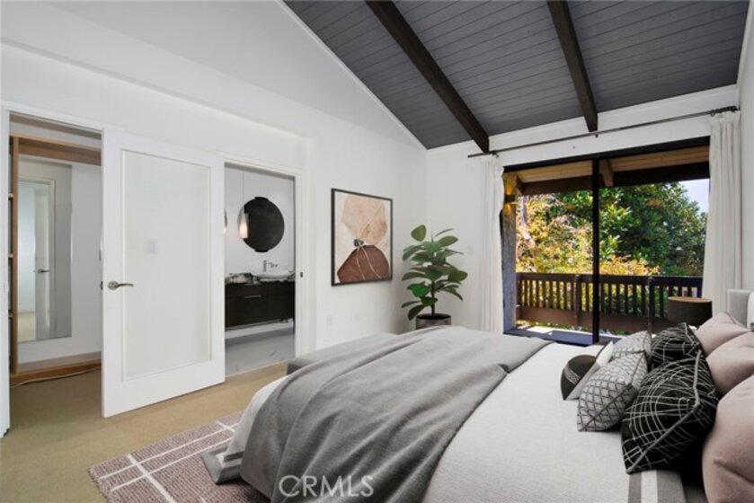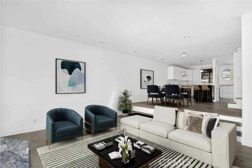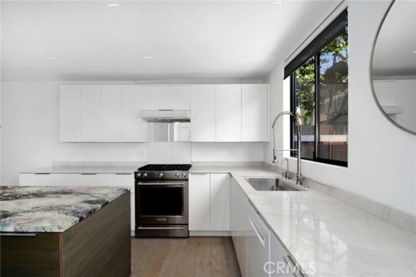 Step into this beautifully renovated, urban-modern townhouse with its own private entrance—perfectly positioned within walking distance to Century City and Westwood Village (UCLA). Tucked away in a quiet, secure 14-unit community with a swimming pool, this spacious 3-bedroom, 2.5-bath residence offers approximately 1,500 sq. ft. of open floor plan living space. Inside, the split-level layout features a fully custom European kitchen with Natural Quartzite countertops, overlooking a dining area that flows into a sunlit living room with a fireplace and charming front porch. Upstairs, the primary suite boasts a private balcony, soaring cathedral ceiling, dual walk-in closets, and a luxurious en suite bath with a double-sink vanity. The second floor also hosts two additional bedrooms—one with a walk-in closet—sharing a sleek, updated 3/4 bath, plus a convenient laundry area with washer and dryer included. Modern upgrades throughout include custom designer lighting, smart-home technology (Ring security, Yale keyless entry, Nest thermostat), and a high-speed mesh network—perfect for today’s active, connected lifestyle. Located in the highly sought-after Westwood Charter School district. Enjoy the convenience of two side-by-side secure parking spaces with car charger, proximity to the Metro Rail, and a thoughtful floor plan designed for comfort and functionality. The first floor is framed by private front and rear patios, creating the ideal indoor-outdoor lifestyle. Designed with an Architect’s eye, and for modern displays of Art. Graciously detailed for luxury living.