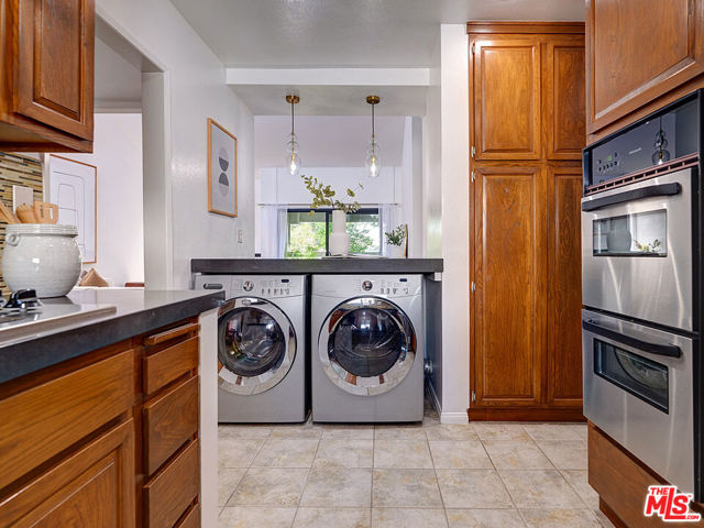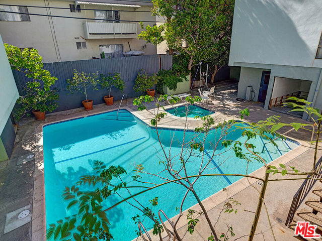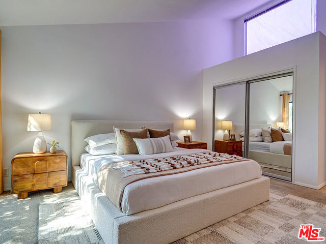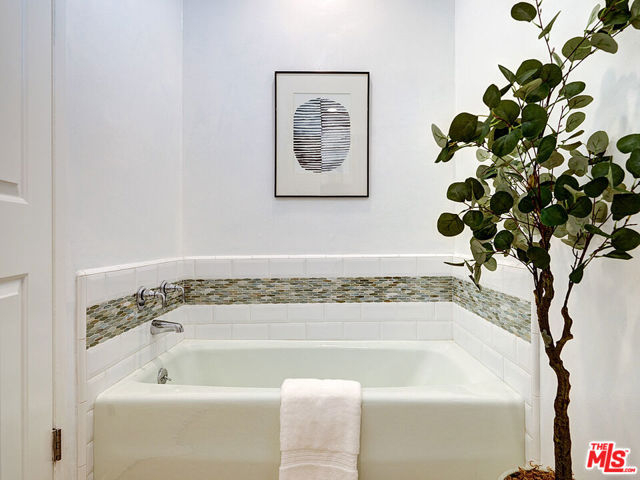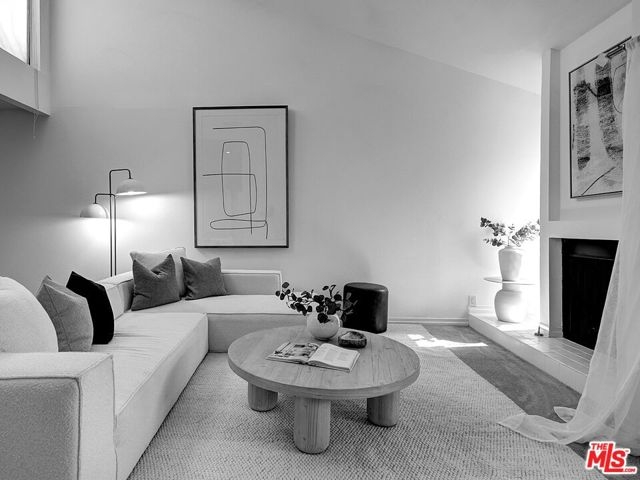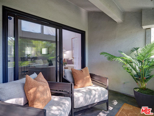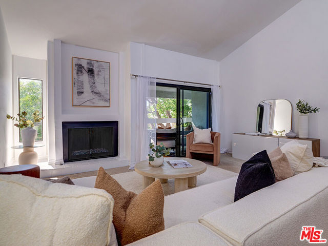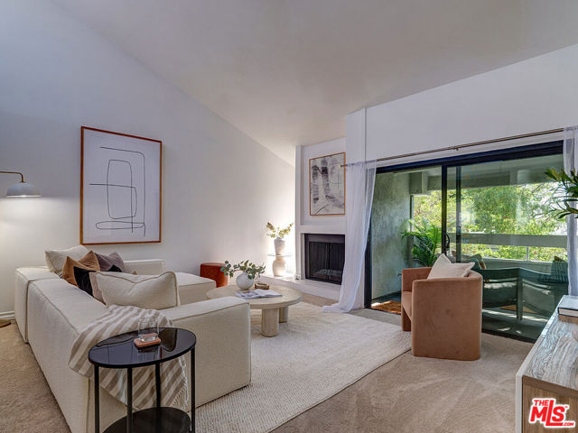 Welcome to sophisticated penthouse living in prime Westwood/Century City, where dramatic vaulted ceilings and expansive windows create a sun-drenched sanctuary with serene treetop views from your private balcony. This tastefully updated residence features a well-appointed kitchen with stainless steel appliances including rich oak cabinetry, sleek Caesarstone quartz countertops, and mosaic tile backsplash, plus a convenient laundry alcove with full-size front-loading washer and dryer. The open living and dining areas flow seamlessly around a cozy fireplace, perfect for both relaxed evenings and lively entertaining. The guest suite offers custom built-in shelving and large closets, with an adjacent updated bathroom featuring classic subway tile and modern fixtures. Your primary retreat boasts soaring ceilings, abundant natural light, an expansive walk-in closet, and a spa-like bathroom complete with dual-sink vanity, designer-tiled shower, and a separate soaking tub. Building amenities include a sparkling pool, spa, and top-floor sun deck. HOA dues include earthquake insurance, basic cable and broadband internet. Unit includes two tandem subterranean parking spaces and additional storage. With proximity to UCLA and Century City dining and shopping, easy freeway access, and zoning for highly-rated Westwood Charter Elementary, this turnkey home is the perfect blend of style, comfort, and luxury in one of LA's most desirable neighborhoods.