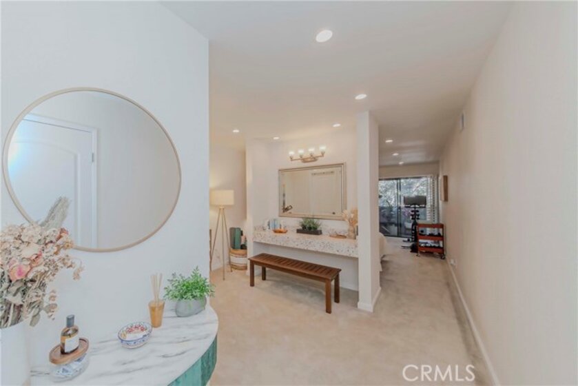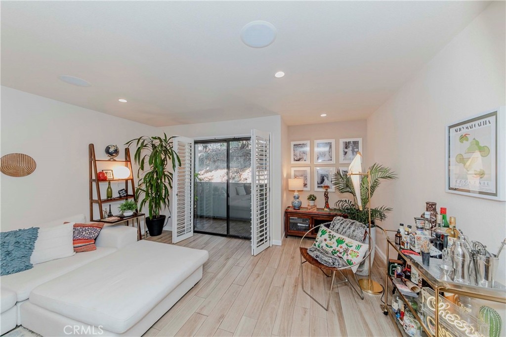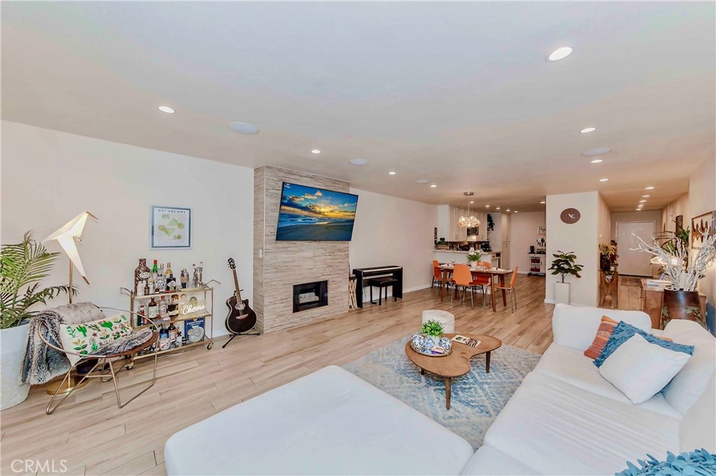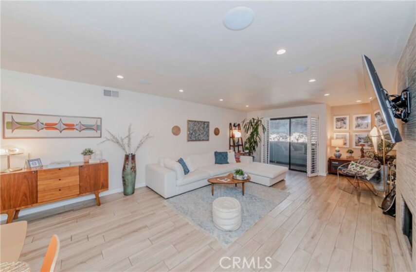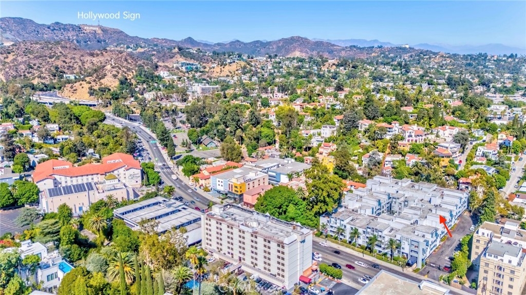 Reimagined Hollywood Hills living with space, privacy and resort style amenities. Discover this beautifully updated 2 bedroom, 2 bath residence in the gated Highland Terrace community where tranquility meets iconic Hollywood living style. Tucked against a tranquil hillside, you will find that this quiet and private home offers one of the largest floor plans in the community with 1,654 sq. ft., delivering rare space and comfort in a prime location. The expansive living and dining area is ideal for entertaining, highlighted by a designer tiled fireplace and seamless indoor-outdoor flow. The modern kitchen features quartz countertops, stainless-steel appliances, a wine cooler, and a generous serving space. The oversized primary suite includes balcony access, a large walk-in closet, a dual-sink vanity, and a thoughtfully designed en suite bathroom. A spacious second bedroom with its own walk in closet is perfect for guests, a home office and creative studio. Additional features include in unit laundry, in ceiling surround sound, tile flooring (perfect for pets), two car tandem parking with storage, and abundant guest parking. Residents enjoy resort style amenities including a pool, spa, gym, sauna, BBQ area, dog run, and 24 hour security monitoring. HOA dues also cover water, trash, high speed internet, and earthquake insurance (supplemental to master policy). Just steps from the Hollywood Bowl and Walk of Fame, and minutes to Runyon Canyon, Griffith Park, Universal Studios, West Hollywood, and DTLA this home offers a rare blend of serenity, space, and unbeatable access.
