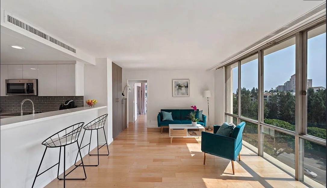 This Century City condominium provides a world-class perspective with panoramic views being a corner unit. You can see local architecture, green space, Beverly Hills, and downtown Los Angeles. Check off every item on your wishlist in this exceptional location close to the area's best shopping at Westfield Century City Mall featuring Gelson's and Eataly markets, plus a host of luxury department and specialty stores, not to mention nearby Beverly Hills and LA's Westside including Westwood and West Hollywood. The condo itself is a showplace with sleek, mid-Century Modern-inspired style plus updated kitchen and baths. The contemporary kitchen features white cabinetry and white quartz countertops plus subway tile backsplash, high-end stainless steel appliances, and a generous seated bar/passthrough for casual dining. The owner's suite is a serene retreat with a double closet and en suite bath with step-inshower. Incredible Century Park East building amenities include 24/7 security staff, fitness studio, dog park, pool, tennis court, and greenspace. Heating and airconditioning are included in your HOA fee. There's also separate storage, numerous Association automobile electric charging stations, valet parking (ownerschoose valet or self park) and valet guest parking. Association has additional parking available. The association renovated the building/lobby within the last few years. Original/staged photos shown first, current condition in the later photos. Condition is the same, but there are personal items and clutter in the unit. All personal items will be removed before closing.