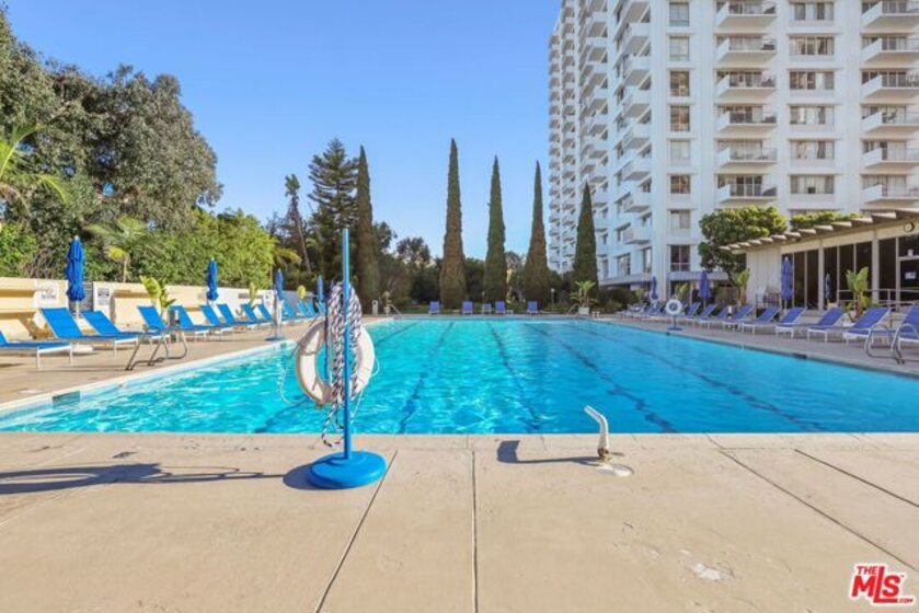 Step into a stylish retreat in the iconic Full-Service Century Park East, where mid-century architecture meets modern luxury. Designed by Charles Luckman in 1966, this celebrated building sets the stage for a one-of-a-kind one-bedroom residence that truly stands out thanks to its show-stopping 250 sq ft private patio. This expansive outdoor haven feels like an extension of the living space and offers endless opportunities: host dinner parties, garden in the sun, create an alfresco lounge it's your own personal outdoor sanctuary in the heart of the city.Inside, the home is bright, open, and thoughtfully upgraded. Floor-to-ceiling windows flood the interior with natural light, complemented by sleek custom motorized blinds. Rich hardwood plank floors, recessed lighting, crown molding, and fresh paint add warmth and sophistication throughout. The kitchen is beautifully appointed with generous custom cabinetry, under-cabinet lighting, and high-end Thermador stainless steel appliances.The oversized bedroom easily accommodates any furniture layout and features another wall of floor-to-ceiling windows framed by crisp plantation shutters. A hallway leads you to an impressive walk-in closet with built-ins and adjustable shelving, plus an additional linen closet for extra storage. The bathroom offers spa-style touches including slate finishes, a jetted soaking tub, separate shower, and an electronic self-cleaning toilet. Plus the convenience of being on the first floor, with easy access to lobby and amenities.. Century Park East delivers a true resort lifestyle with 24-hour valet, concierge, on-site management, security, a sparkling Olympic-size pool with towel service, saunas, a fully equipped fitness center, tennis courts, a dog park (complete with monthly dog socials!), and beautifully landscaped grounds full of flowers and greenery. HOA dues cover water, hot water, sewer, and trash. The unit includes assigned parking, dedicated storage, and valet for both residents and guests.All of this is set in a prime location just minutes from Century City Westfield Mall, Beverly Hills, Santa Monica, Westwood, and UCLA putting the best of Los Angeles right at your doorstep.