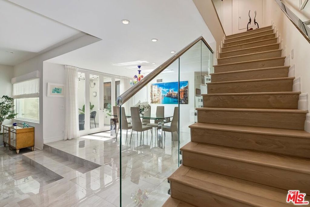 Exquisite, sleek, and sun-filled, this contemporary two-bedroom townhome offers sophisticated living in the heart of Century City's coveted Century Hill - a prestigious, guard-gated enclave set on 18 acres of lush, landscaped grounds. This immaculate three-level residence welcomes you through a private huge, gated patio on its courtyard level into a voluminous living room with soaring ceilings, a striking marble fireplace, and a dramatic central atrium that floods the space with natural light. The open-concept layout flows effortlessly into a formal dining area and adjacent open-air atrium, perfect for al fresco dining or relaxed entertaining. The modern kitchen is thoughtfully designed with stainless steel appliances, ample cabinetry, and a cheerful breakfast area complemented by a chic powder room and sleek wet bar on the main floor. Upstairs, beneath a large skylight, the grand primary suite offers a tranquil retreat with a cozy fireplace, sitting area, and private balcony showcasing sweeping hillside views. The spa-inspired bath features dual vanities, a soaking tub, separate shower, private water closet, and large walk-in closet. A spacious guest suite with full bath and open den area completes the upper level. On the lower, subterranean level, enjoy direct private access from a two-car garage, a dedicated laundry room, and additional large storage room space (can be converted back to 3rd parking space) enhancing the convenience and livability of this refined home. Century Hill's resort-style amenities include five sparkling pools, tennis and pickleball courts, an indoor racquetball court, golf driving range, state-of-the-art fitness center, manicured walking paths, and a stunning clubhouse with full catering kitchen all secured by 24/7 guarded access and enhanced by attentive resident services, including day-to-evening package delivery. Ideally located moments from world-class dining, shopping, and entertainment in Century City, Beverly Hills, and Westwood, this exceptional townhome is a rare expression of modern luxury and timeless design.