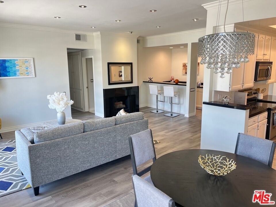 Remarks: Welcome home! This 2 bedroom 2 bathroom CORNER UNIT Condo with brand new laminate flooring and open floor plan almost 1400 sqft is perfect for those seeking abundant natural light in the most sought-after area. This home is located in the prestigious Century City area and is a quick jump to the shopping and restaurants in Beverly Hills, Century City Mall and comes with quick access to Rancho Park, UCLA and the highly sought-after Westwood Charter Elementary school nearby. The unit has open floor plan, large door to the balcony, natural light by day and the stunning Century City skyline at night. Laundry in the unit with plenty of storage spaces. Enjoy the connectivity of the open floor plan, linking the kitchen to the dining area, creating an inviting space for gatherings. Spacious living room offers a fireplace and wet bar for entertaining. The LARGE master bedroom can fit in a king-sized bed and still has room for a sitting area. Large walk-in closet offers plenty of room. Upgrades include crown molding and LED recessed lightings. Secured parking area, 2 tandem parking spaces, and a large storage room. HOA dues include pool, spa, and rec. room, also Electric Car Charger (EVC), water, gas, trash and Earthquake insurance.