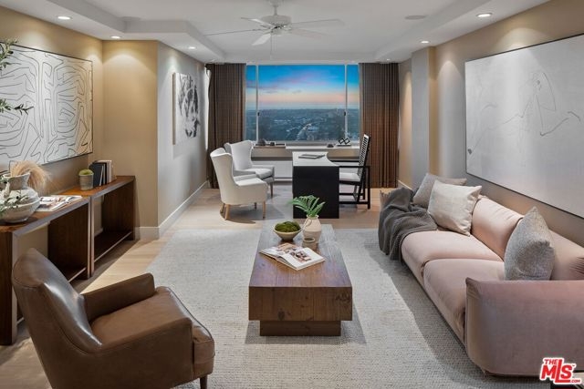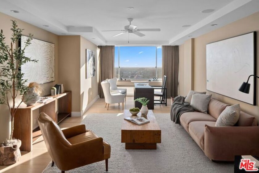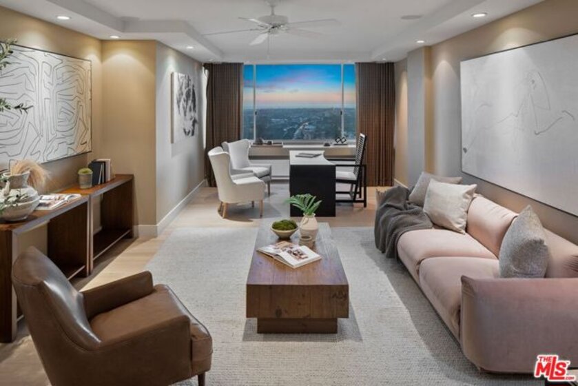 Designed by renowned architect I. M. Pei, Century Towers has been a hallmark of modern design since the 1960s. This custom residence, created by combining a two-bedroom and one-bedroom unit, offers approx. 3,000 sq ft of sophisticated living space. Perched on the 22nd floor, the home captures unobstructed south-facing views from Downtown Los Angeles across Hillcrest Country Club, Palos Verdes, Fox Studios, and out to the Pacific Ocean for dramatic sunsets. The expansive primary suite includes dual bathrooms, dual vanities, built-ins, and generous closet space. A second bedroom, set in its own wing, enjoys vistas extending to Catalina Island. A home office and family room can offer flexibility for guests as a third bedroom. Century Towers provides 24-hour guard-gated entry, valet parking, concierge service, fitness center, swimming pool, sauna, and tennis courts. Ideally located moments from Beverly Hills, Century City, and the Westside.