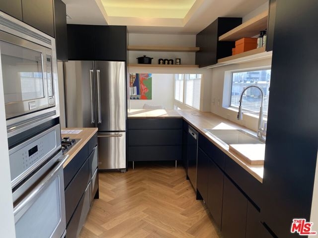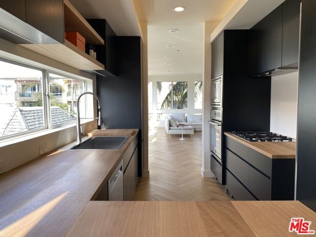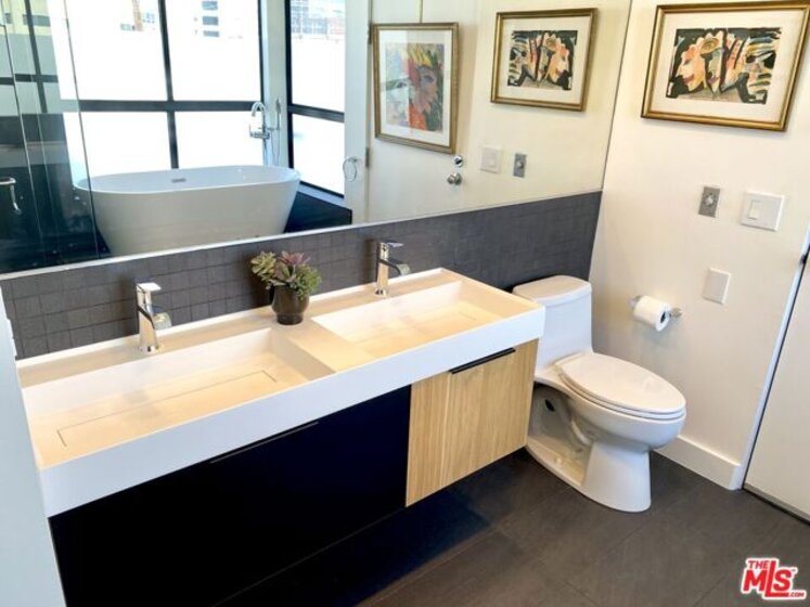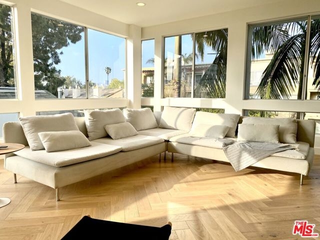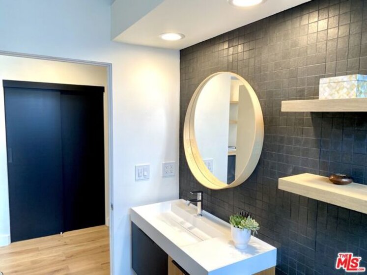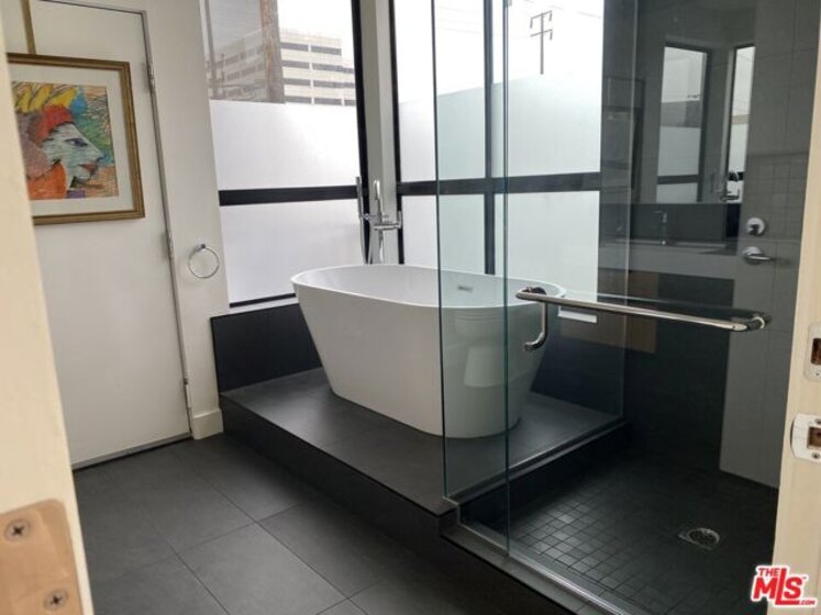This modern 2 bedroom / 2 bathroom plus bonus room condo has been completely remodeled. The oak floors and the black and white color palette combined with 9 ft ceilings and floor-to-ceiling windows make this home feel spacious and bright. The master bedroom has a fireplace, two very large closets, and an additional walk-in closet. The en-suite bathroom features a free standing tub and frameless shower. Special attention was given to lighting throughout the home with recessed lighting in every room, soffit lights in kitchen and bathrooms, an original Herman Miller Nelson Bubble pendant lamp, all on dimmers to give full control of the ambiance. The large bonus room can serve as a den, media room, or a home office. There is a surprisingly large amount of closet space and storage throughout. The two independent central air systems allow for true dual zone temperature control. Located in the heart of the West Side, between Santa Monica, Sawtelle, West LA, Century City, Beverly Hills, and Westwood this small architectural building, of only 8 units, offers modern living near everything West Side. Great Freeway access to both the 405 and 10, near UCLA, and walking distance to the Metro Expo line which can take you downtown or to the beach. This condo is perfect for someone who loves modern designs and is looking to enjoy west side living in a bright urban home with lots of sky, tree tops, and city views. No sign on the property. Call anytime to schedule a private showing.