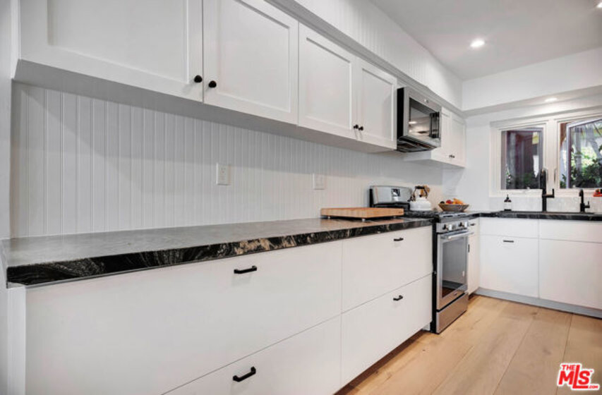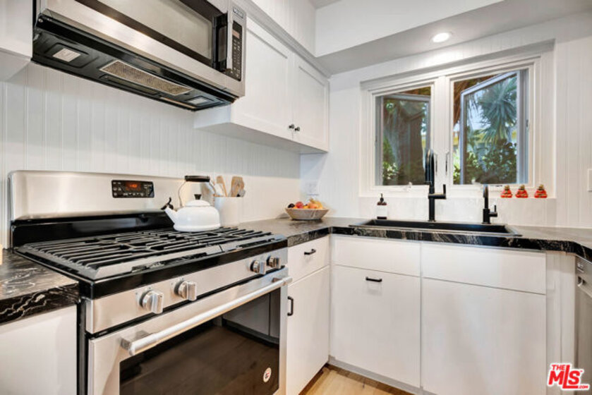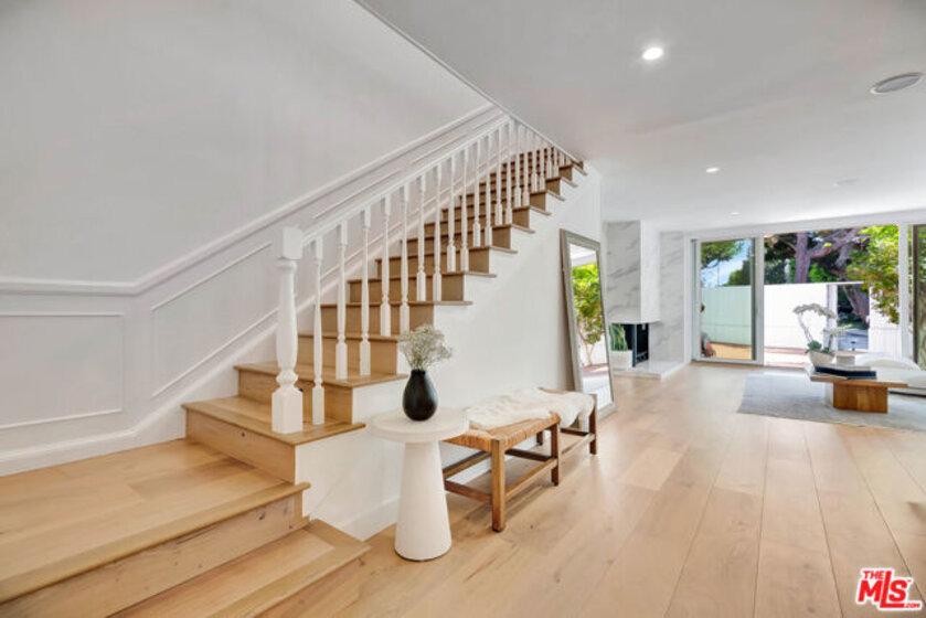 Welcome to this stunningly updated Brentwood Village townhome, where style meets comfort in one of Westside's most desirable communities. Designed for modern living, the light-filled living room flows seamlessly to a spacious private patio through sliding glass doors, perfect for entertaining or relaxing with effortless indoor-outdoor living. The chef's kitchen showcases stainless steel appliances, custom wood cabinetry, and elegant stone countertops. Additional features include rich hardwood floors, a sleek gas fireplace, recessed lighting, central HVAC, dual-pane windows, and a convenient downstairs powder room. Upstairs, the luxurious primary suite boasts a newly reimagined bathroom with a dual vanity, an expansive walk-in shower, and designer finishes. The secondary bedroom offers serene garden views and is paired with an updated bath featuring a stylish walk-in shower. A brand-new stacked washer and dryer, along with thoughtful upgrades throughout, add to the home's turnkey appeal. Nestled within a tranquil five-acre resort-style gated community, residents enjoy lush landscaped grounds, peaceful ponds, two sparkling pools, a spa, a dog park, picnic areas, and ample guest parking. All of this, just minutes from Brentwood's vibrant shops and restaurants, scenic parks, UCLA, and convenient access to the 405 Freeway.