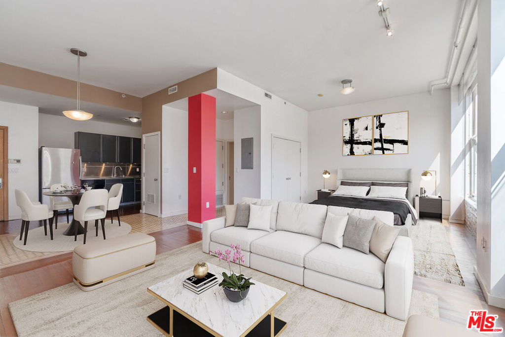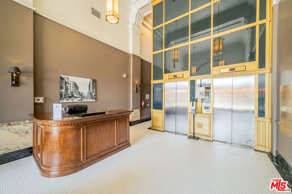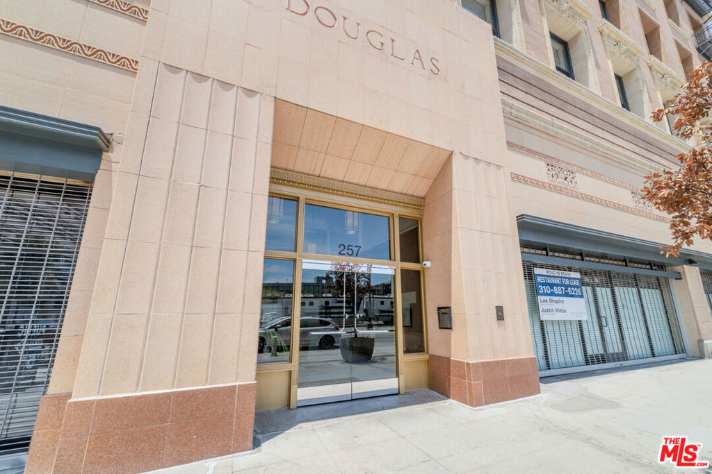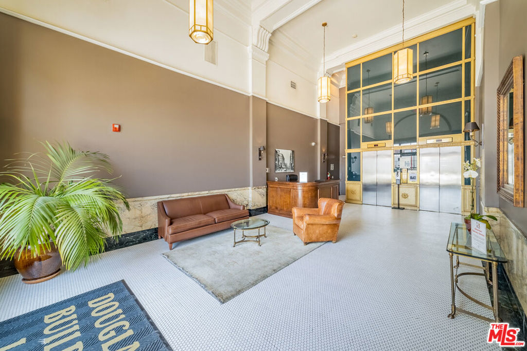 3D Tour: bit.ly/Douglas-2B hard loft in the prestigious Douglas building. Originally the chief ticket office for the Southern Pacific Railroad and now restored as historic condominiums, enjoy original exposed brickwork, wall full of beautifully restored double-hung windows, elevated ceilings, rich Douglas Fir flooring and elegant mosaic tiling laid throughout. The kitchen showcases Poggenpohl kitchen cabinets, granite countertop, and fantastic stainless-steel appliances. In the bathroom, delight in a spacious soaking tub with gorgeously laid subway tiling, travertine countertop vanity, and Waterworks fixtures. Included with the home is an in-unit vented washer & dryer along with front desk security/concierge and a newly installed ButterflyMX call box system. The Douglas building is designated as a Mills Act Historical Building which grants homeowners of upwards to 70% off their property taxes and these savings are grandfathered to every subsequent owner as well! The building is conveniently located next to Grand Central Market, brand new Metro Station, and several highly acclaimed destinations including The Last Bookstore, The Broad, and Walt Disney Concert Hall to name few.