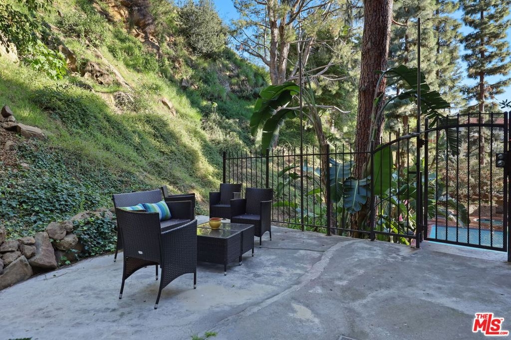 Set within the gated Cahuenga Hills Tennis Condominiums, this bright 1 bedroom, 1 bathroom condo offers a comfortable layout and private balcony in the Hollywood Hills. The open living and dining area is filled with natural light and extends to a balcony with greenery and mountain views, creating an easy indoor-outdoor flow. The kitchen connects seamlessly to the main living space, and the bedroom is generously sized with ample closet space. Residents enjoy access to 3 tennis courts, 2 pools, a spa sun deck, 2 fitness rooms, 2 saunas, rooftop deck, clubhouse, dog run, bike storage, assigned parking, guest parking, and hiking trails throughout the hills. HOA dues include cable TV, internet, water, trash, fire and earthquake insurance, landscaping, maintenance, onsite staff, and professional property management. Located near the Hollywood Bowl with convenient access to Hollywood, Toluca Lake, Burbank, and Studio City.