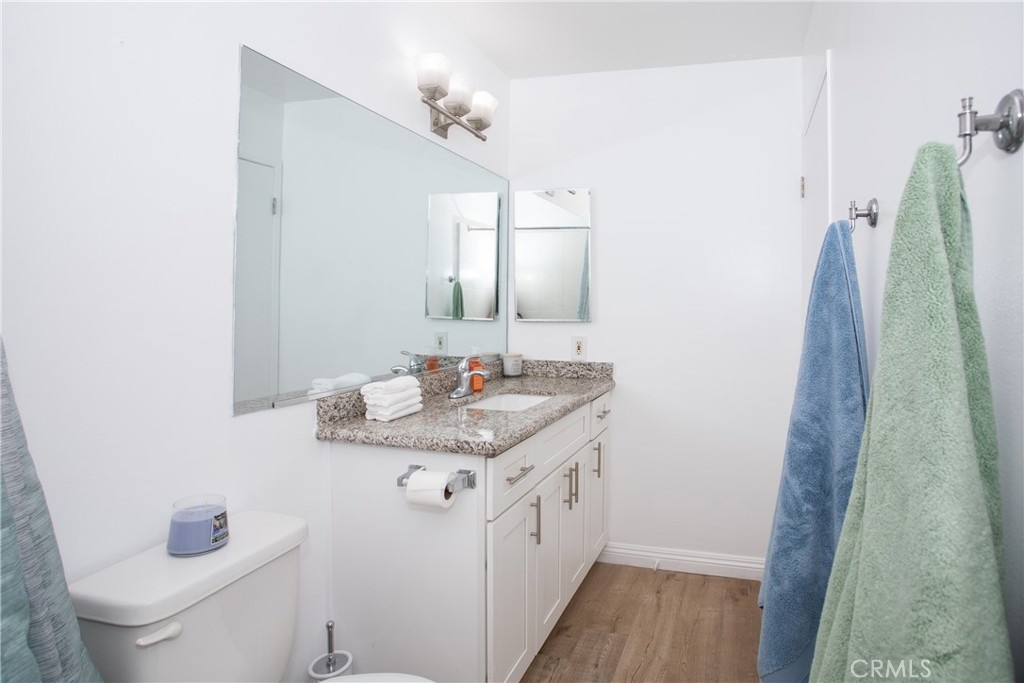 Top-floor, extensively updated 2BR/2BA condo in a prime West Los Angeles location featuring tasteful, modern finishes throughout, and includes an in-unit washer and dryer. Distressed Hickory Ebony laminate flooring runs through the living and dining areas, with wood grain textured luxury vinyl in the kitchen and bathrooms. The kitchen offers granite countertops and wood cabinetry. The living room features recessed lighting and opens to a spacious balcony. The primary suite includes a walk-in closet and an en-suite bathroom with granite vanity and tub/shower. Located near the vibrant Sawtelle Japantown district, the property offers walkable access to diverse dining options, cafes, grocery stores, and retail including Starbucks, Vons, and Mitsuwa Marketplace. Close proximity to the 405 freeway provides a quick connection to Santa Monica, UCLA, and the Westside’s tech and entertainment hubs.