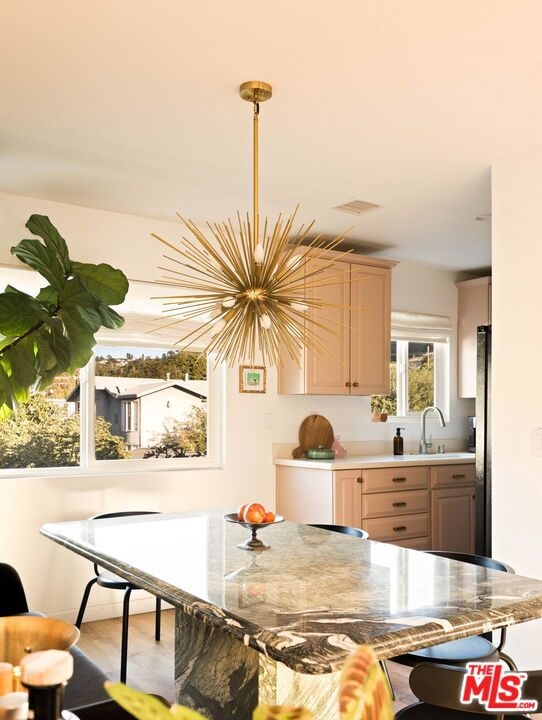 Welcome home to your stylish and happy top-floor condo with views of the hills and a lovely private balcony! Bonus: the building shares a common yard, perfect for decompressing or playing after a long day. The living space is bright and open to the stylish balcony - become an urban gardener, or slip outside to enjoy your morning coffee. The living and dining rooms enjoy a seamless flow - guests even have their own powder room - no need to share when you host! A colorful kitchen overlooking hills makes doing the dishes fun. Two large bedrooms with impressive dual closets allow you to spread out in comfort and style. This home is ready to go with an updated kitchen, bathroom, flooring, and lighting and is an end-unit with only one shared wall. Enjoy a super convenient in-unit laundry area, dedicated locked storage unit in the communal garage, and an HOA that covers EQ insurance, water, trash, building and yard maintenanceall for $490/month. Tucked right between Silver Lake, Atwater Village, and Highland Park, you'll be living in the sweet spot where endless restaurants, bars, cafs, and local gems are always within easy reach. The unit has 2 assigned parking spaces, and there is guest parking for the building.