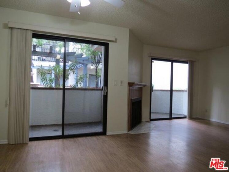 One bedroom condominium in a garden style building...Two (2) parking spaces belong to the condo...Updated kitchen with cabinetry and countertop...Walk-in closet, a separate small storage and linen shelves in the bedroom...Wet bar and fireplace in the living room...Two patios can be accessed in dining area and living room...Community laundry...