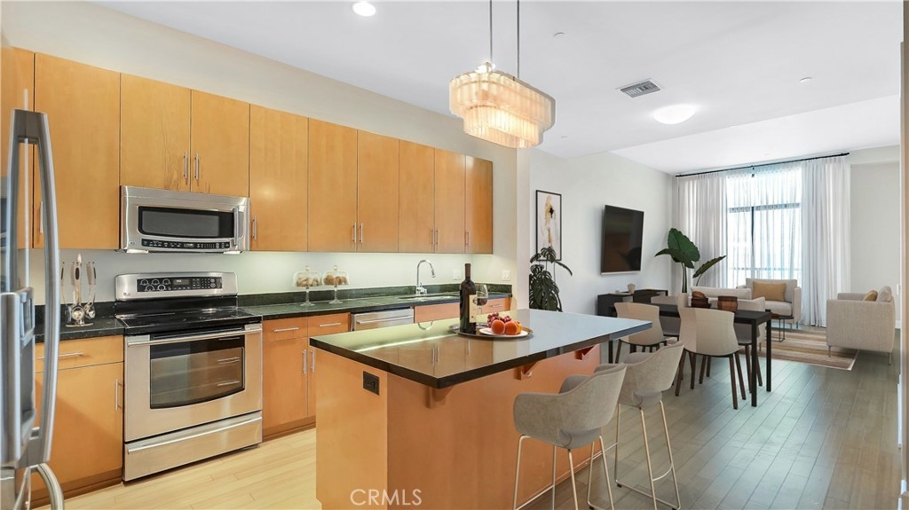 High-end luxury condo building complete with 24- hour concierge, package retrieval and tracking system, fully equipped gym, sauna and golf simulator. This is sophisticated condo living in the heart of Koreatown at the prestigious “The Summit on Sixth”. Unit has a wonderful open feel with the high ceilings and dramatic windows that rise from floor to ceiling. Living area features bamboo flooring and lots of natural light. Gourmet kitchen with stainless steel appliances, bountiful cabinet & counter-top space with eat-in island, is perfect for entertaining. Enormous primary suite is complete with walk-in closet, oversized tub, separate walk-in shower and his and hers vanities. Large den has been converted to use as a second bedroom. Fully equipped with air-conditioning and in unit washer and dryer. Freshly painted with new carpet in both bedroom areas. Secure underground parking with easy access to your unit. Soak in the view of Griffith Observatory and the world famous Hollywood sign. Centrally located near the Fairfax district, Miracle Mile, Beverly Hills and Downtown LA. Come live the city life with all the luxuries you deserve. These notices are the rules of entry per CA regulations: https://tinyurl.com/VistaSIRRulesofEntry