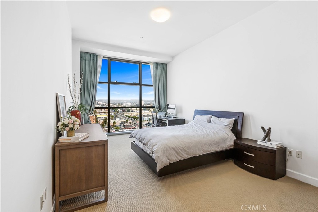 Enjoy AMAZING VIEWS in this designer finished NORTH-FACING unit in the prestigious high-rise Summit on Sixth. Large PRIVATE balcony with panoramic views of the world-famous Hollywood Sign and Griffith Observatory from bedrooms and the living area. This 2-bedroom 3-bathroom open-concept home is bursting with light with luxurious finishes that sets it apart from every other unit in the building. High ceilings soar up to 11.5ft with floor-to-ceiling windows. Gourmet kitchen has stainless steel appliances, modern cabinetry, and granite countertop perfect for entertaining guests. Enormous primary suite is complete with walk-in closet, oversized tub, walk-in shower, and his and her vanities. Secondary room is also equipped with an en suite bathroom with walk-in shower and closet. This high-end building is equipped with five-star amenities including 24-hour security and concierge, package retrieval and tracking system, gym, sauna, and indoor golf simulator. Two designated underground side-by-side parking with EV CHARGER INCLUDED. Located in the heart of Koreatown moments from countless restaurants, grocery stores, and the Metro station. This amazing home won’t last long – schedule a private showing today!