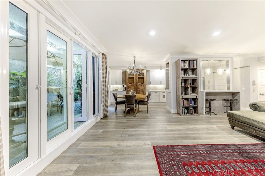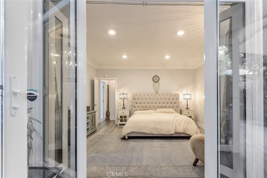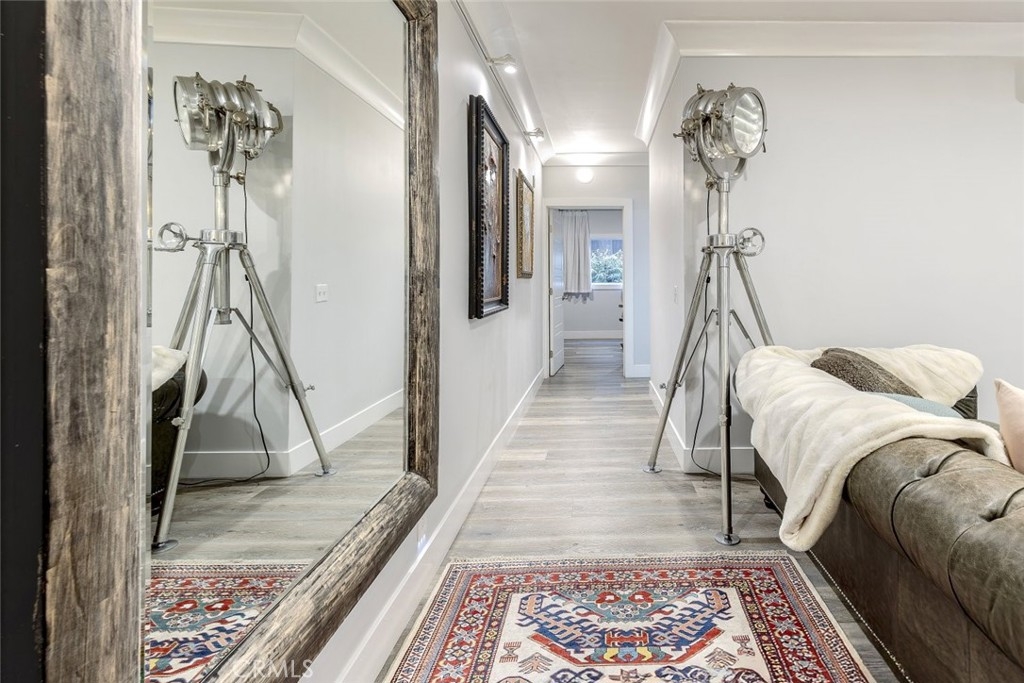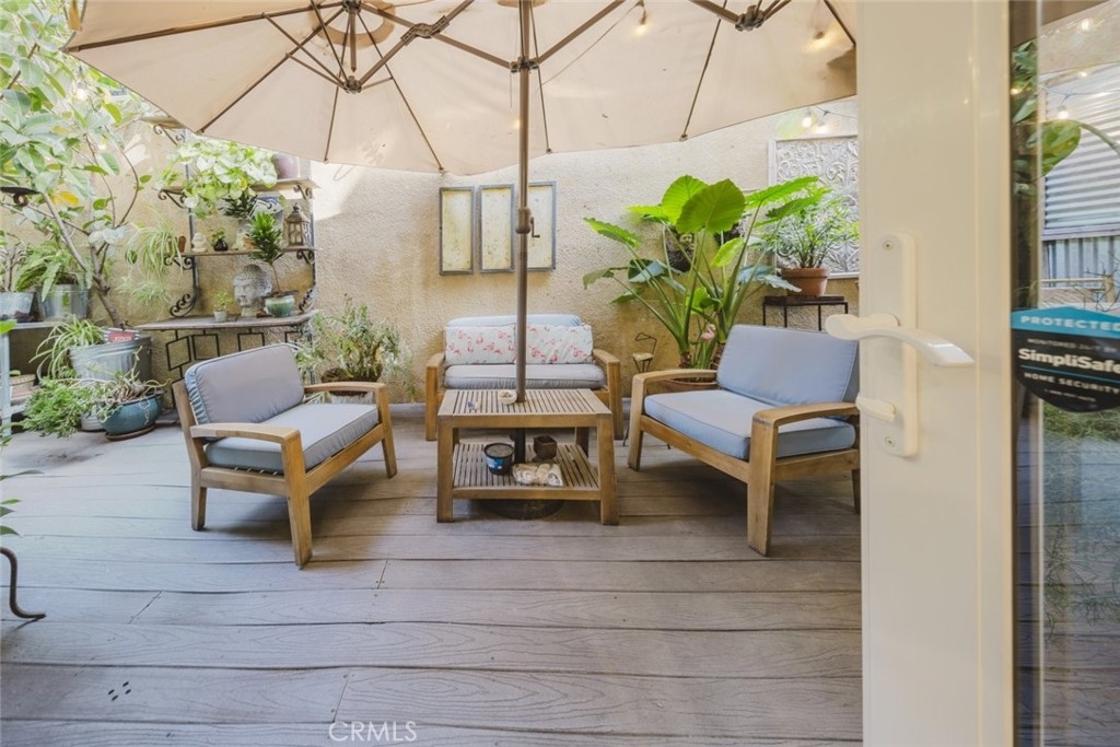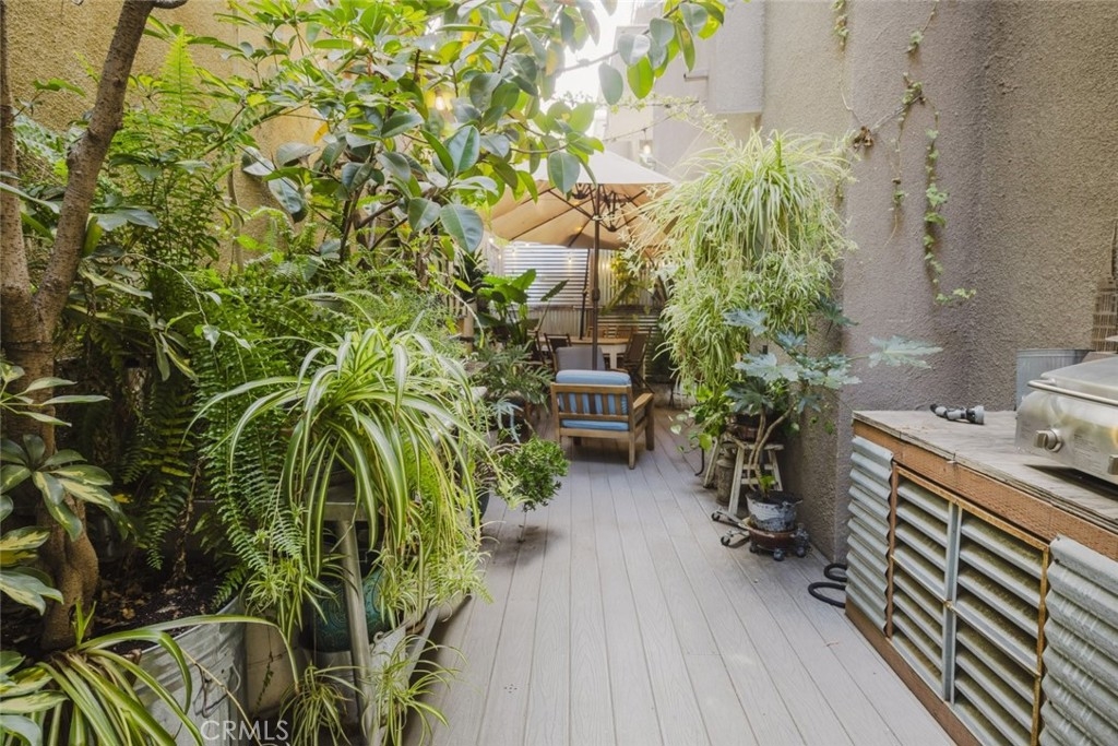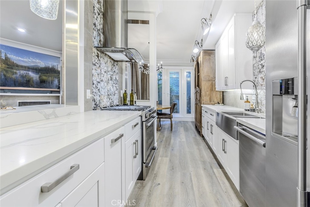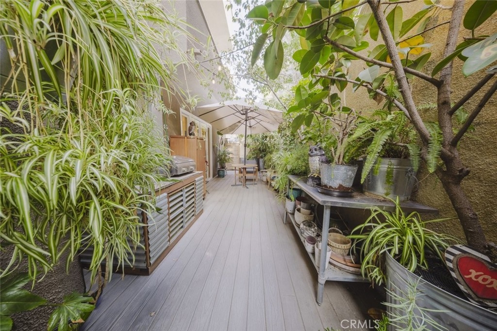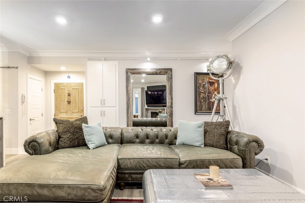 Welcome to this stunning, designer-upgraded end-unit condo at 3284 Barham Blvd: where style, comfort, and location come together effortlessly. Beautifully remodeled and redone to perfection, this spacious 2-bedroom, 1-bath home offers 1,156 sq. ft. of modern living. Once inside an open-concept floor plan featuring high ceilings, recessed lighting, crown moldings, and a cozy fireplace that create an inviting ambiance throughout. The gourmet kitchen showcases Caesarstone waterfall countertops, a farmhouse apron sink, custom soft-close cabinetry, and high-end stainless steel appliances. Additional upgrades include 100% waterproof flooring, solid wood doors, dual bathroom sinks with Caesarstone counters, soundproof walls and ceilings, and in-unit laundry with washer and dryer. Custom French doors in both the living room and primary bedroom open to a private patio of approximately 500 sq. ft., surrounded by lush greenery, a serene retreat perfect for relaxing or entertaining. Enjoy two side-by-side parking spaces, low HOA dues, and the convenience of direct street access through your private patio without entering the main building. Located just moments from the best of Los Angeles: the Hollywood Bowl, major studios, scenic hiking trails around Lake Hollywood, upscale shopping, dining, and nightlife, this condo offers the perfect balance of tranquility and city living. A true blend of design, function, and location, this rare find in one of L.A.'s most desirable neighborhoods is ready to welcome its next owner.