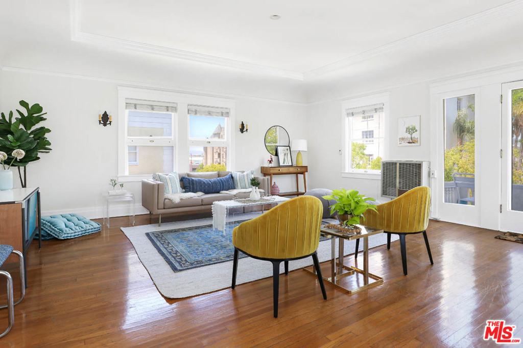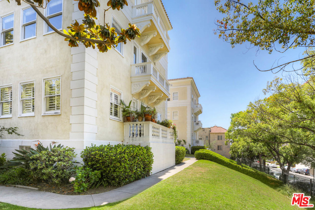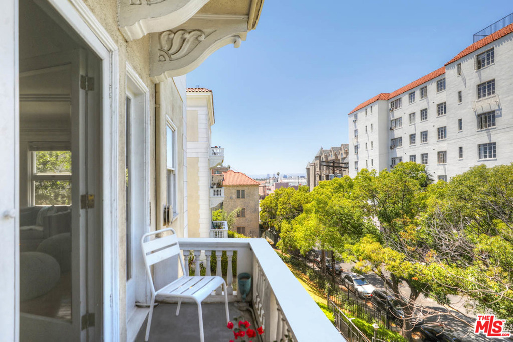 This large and light-filled condominium places you center stage in happening Koreatown, in the historic gated community of Miramonte Terrace. The beautifully maintained one-bedroom home resonates with Parisian chic, presenting elegant proportions with oversized windows and a breezy private balcony capturing winsome city views. Period details are found throughout including coved ceilings, crown moldings, built-ins and hardwood flooring. The vintage-inspired kitchen is rendered in white with an adjacent space that's perfect for your home office or den; the handy powder room is a nice amenity for guests. Conveniences include parking for two cars, storage space, rooftop lounge access and gated entry. Miramonte Terrace is one of LA's great historic jewels, an Italian Revival monument of just 16 residences set amidst rolling lawns in a city-central location. The best of Koreatown is around the corner including markets, dining and nightlife. Hollywood and Downtown LA are within easy reach.