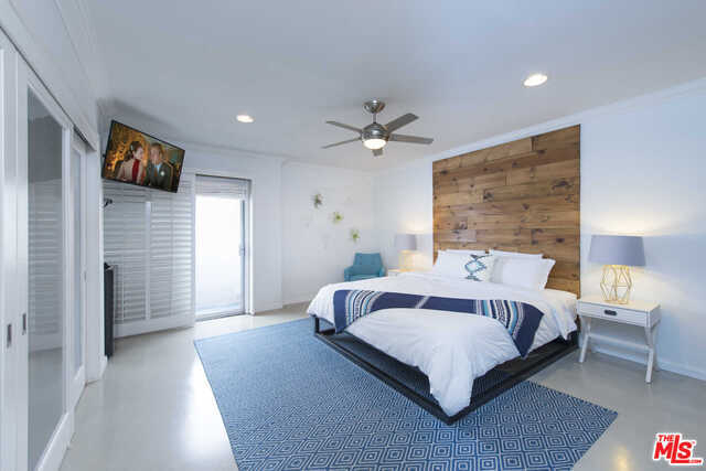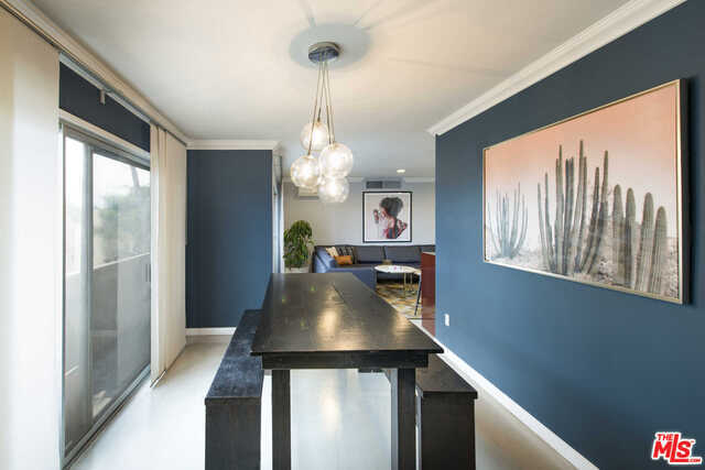 Located only a few blocks from Larchmont Village, this spacious top-floor California chic two-bedroom, two-bathroom home is smartly configured and well equipped. A formal entry, framed by walls designed to display art, leads to a large living room, which is bookended by two generously sized master suites. A formal dining area connects the living room to a well-proportioned kitchen with ample storage and counter space. The home lives larger, courtesy of two long patios, with views of the Hollywood Sign and palm-lined streets as their backdrop. The residence benefits from having a south-western exposure, bathing it in light all day. Both bathrooms have been nicely updated. Other amenities include: polished concrete floors, five sets of patio doors leading outside, newer copper plumbing, laundry in-unit, secured two-car parking, additional storage locker, and a community pool.