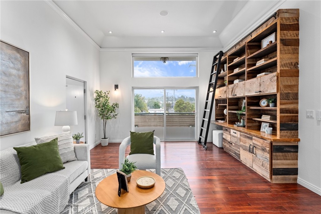 This stunning 2-bedroom, 2-bathroom condo offers 1,000 sq ft of thoughtfully designed living space. Soaring ceilings and abundant natural light create an airy, inviting atmosphere throughout. Upon entry, you are greeted with a library-style built-in bookshelf with sliding ladder, adding charm and function to the living area. The private balcony is an ideal perch for relaxing or soaking in the fresh air. Enjoy the convenience of in-unit laundry, two assigned parking spaces, and modern updates throughout. Both bedrooms are generously sized, offering comfort and flexibility. With no shared walls and no neighbors above, peace and quiet are part of everyday life. Located in a prime West LA location—walking distance to Trader Joe’s, and just minutes from Downtown Culver City, Sawtelle, Westfield Century City, and a short drive to UCLA. This home is an ideal setting for both work and play.