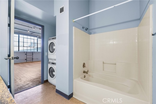 Live and work in style at the **Little Tokyo Lofts**, a chic and sophisticated building in the heart of Downtown LA. This spacious loft features soaring ceilings, a dramatic concrete column, and a large north-facing original casement window that fills the space with natural light and showcases stunning city views. The interior blends modern industrial charm with functionality, offering a mix of hardwood and concrete flooring, a well-appointed kitchen with granite countertops and stainless steel appliances, and a bathroom with both a bathtub and separate shower. Additional highlights include dual ceramic sinks, ample vanity storage, in-unit washer and dryer, central heating and air conditioning, generous closet space (plus an extra dresser closet), cable/internet hookups, and a bonus loft area perfect for storage or creative use. Residents enjoy exceptional amenities including a heated garden-style pool and spa, open-air lounge patio, BBQ and library areas, a fully equipped gym, and a dog run. The gated community offers top-tier security, a private parking structure with one designated space, and over 25 secure guest parking spots. HOA dues cover water, sewer, trash, amenities, and security/parking. Located at the crossroads of **Little Tokyo Village**, the **Arts District**, and **Gallery Row**, this loft is just steps from some of the city’s best dining, shopping, markets, and Metro access—making it a perfect home base for creatives, professionals, and urban dwellers alike.
