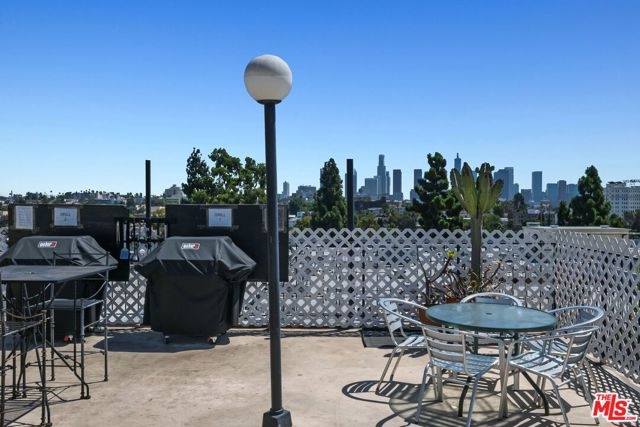 Pretty Pretty Penthouse with Views! Step into a one-of-a-kind penthouse condominium nestled within a superbly central location in the vibrant heart of the city, where Koreatown/Rampart Village and Downtown Los Angeles intersect. Truly spectacular city and DTLA skyline views from the living room, balcony, and bedroom! An effortless blend of retro charm, with sleek, modern sophistication, and a chic Boho aesthetic, creating a truly unique urban sanctuary. Light, open-concept layout, fireplace, sound-insulated windows, and morning sun balcony! Bright, airy, and peaceful, offering a comfortable setting for both living and working. Timeless design touches add warmth and personality, while updated, custom finishes (including custom built-in furniture and Samsung Frame Art TV) throughout elevate the overall design accentuating privacy and security. The kitchen features sleek appliances, ample storage cabinetry, quartz countertops and a generous island, perfect for both daily use and entertaining on special occasions! Community amenities include a fabulous rooftop deck with pool, spa tub, sauna, BBQ and stunning city views as far as the eye can see. A multi-purpose rec room and well-equipped gym, with manager or security on site 24-hrs and gated parking garage complete the LaFayette lifestyle. Located down the street from La Fayette Park, one is surrounded by Rampart Village's best restaurants, shops, cultural venues, wonderful parks and public transit options. This is a rare opportunity to own a thoughtfully designed penthouse in this most desirable Koreatown/Rampart Village's/DTLA building with easy access to USC and Freeways 5, 10, 101, 110. Enjoy LA life at its best!
