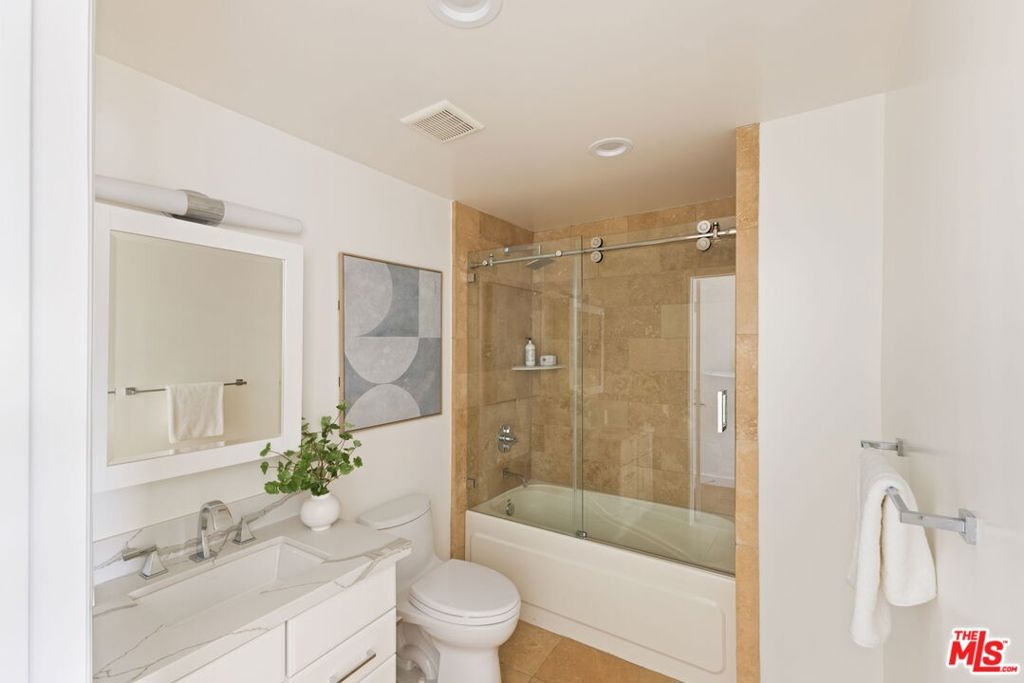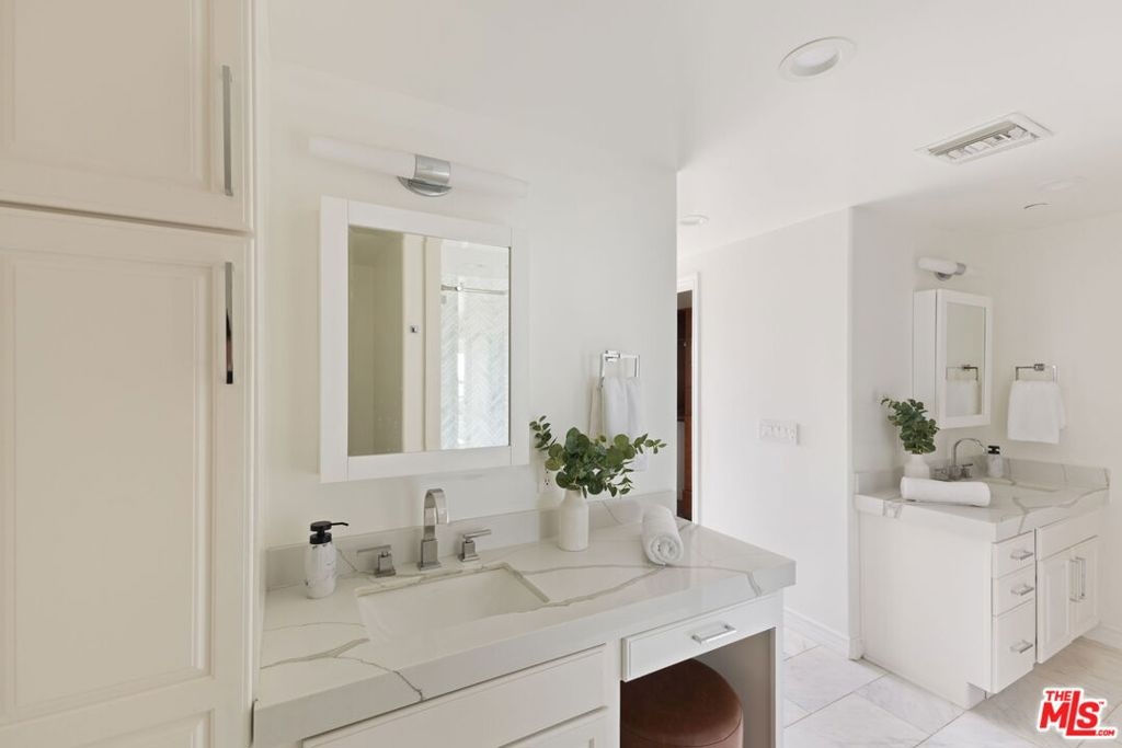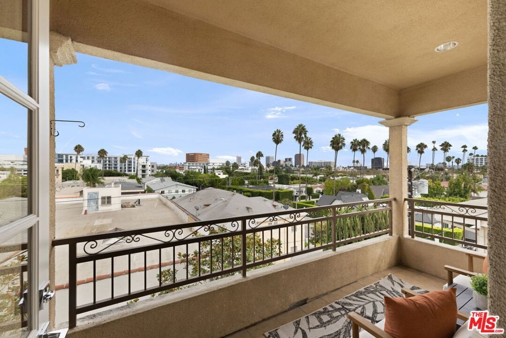 This stunning penthouse blends privacy, luxury, and a premier location. Built in 2008, the residence boasts no shared walls, abundant natural light, and a spacious layout with 3 bedrooms, 3.5 bathrooms, a versatile bonus room/office or 4th bedroom, and three private patios. The open-concept living and dining area is ideal for entertaining, complete with a wet bar, wood floors, recessed lighting, and a cozy fireplace. The chef's kitchen is appointed with stainless-steel appliances, and counter seating. The oversized primary suite opens to a west-facing balcony and offers a spa-like bathroom with dual sinks, a soaking tub, a separate shower, and two walk-in closets. A second primary suite features its own east-facing patio and a third bedroom, both of which are en-suite with generous walk-in closets Additional amenities include custom window treatments, ceiling fans, dual-zone HVAC, a spacious laundry room with washer and dryer, and two secure underground side-by-side parking spaces plus guest parking. Residents also enjoy access to a rooftop deck with sweeping city and mountain views. Perfectly situated moments from Cedars-Sinai, Robertson Blvd., 3rd Street, Burton Way, The Grove, Rodeo Drive, and the world-class dining and shopping of Beverly Hills and West Hollywood. This penthouse delivers sophistication, convenience, and an unparalleled lifestyle.