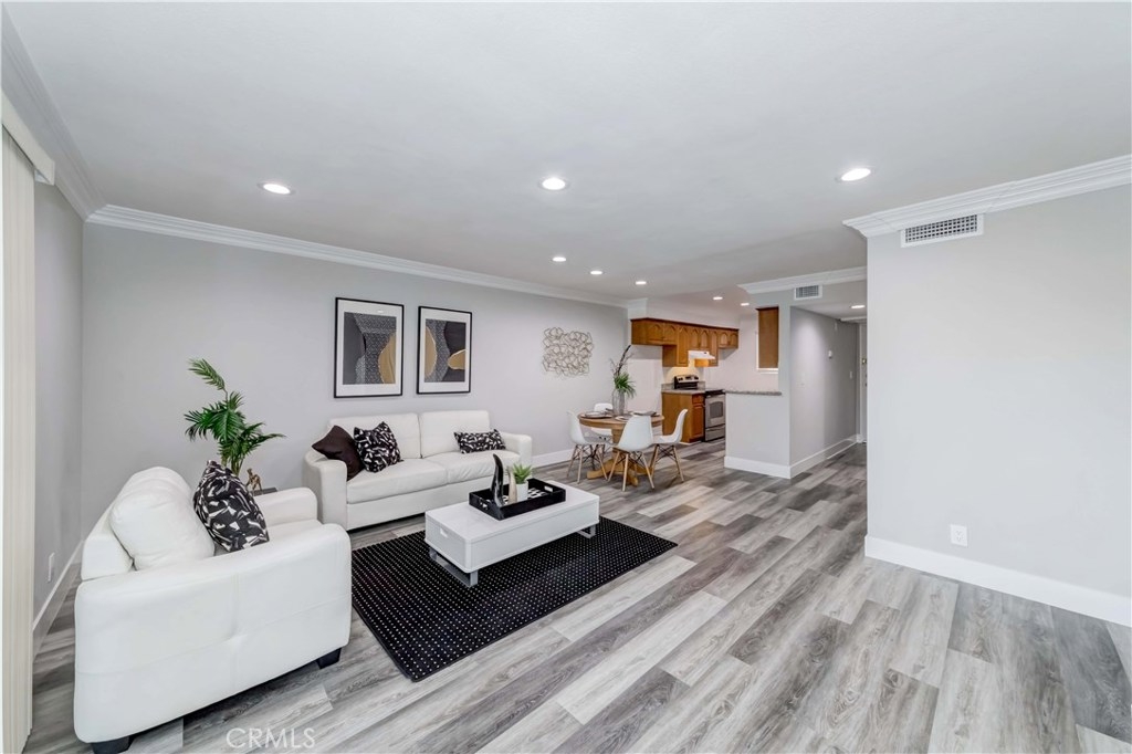 Great opportunity to own a two-bedroom condo in Koreatown! Features two full baths with tub, central A/C & Heating, brand new laminated floor, recessed lights, new paint, new balcony tile, inside washer & dryer, gated parking with two assigned space and many more! Very low HOA and it includes water, trash, fire insurance, and earthquake insurance. Walking distance to great restaurants, shopping, and markets.