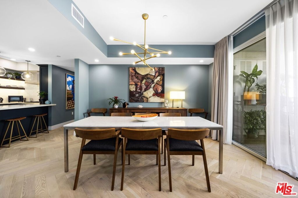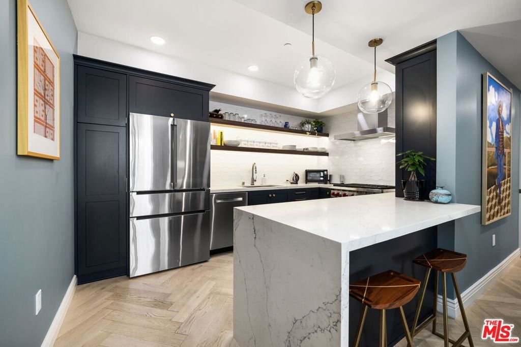 Carefully curated to create a serene oasis, this thoughtfully updated top floor condo in a premier Brentwood Concierge building with 24-hour security is ideally located. Whether working at home, relaxing around the pool, or meeting friends at one of the many top restaurants nearby, this property offers the ultimate in urban living. The open floor plan seamlessly transitions from the living room to the dining room to the kitchen, perfect for entertaining family and friends. The three bedroom floor plan provides flexibility to adapt to your lifestyle. The primary suite has a large walk-in closet and a luxurious bath with separate tub/shower, and dual sinks. Custom finishes include designer wallpaper, herringbone flooring, and custom cabinetry. The building has multiple guest parking, a gym, and pool. Don't miss this unique opportunity.
