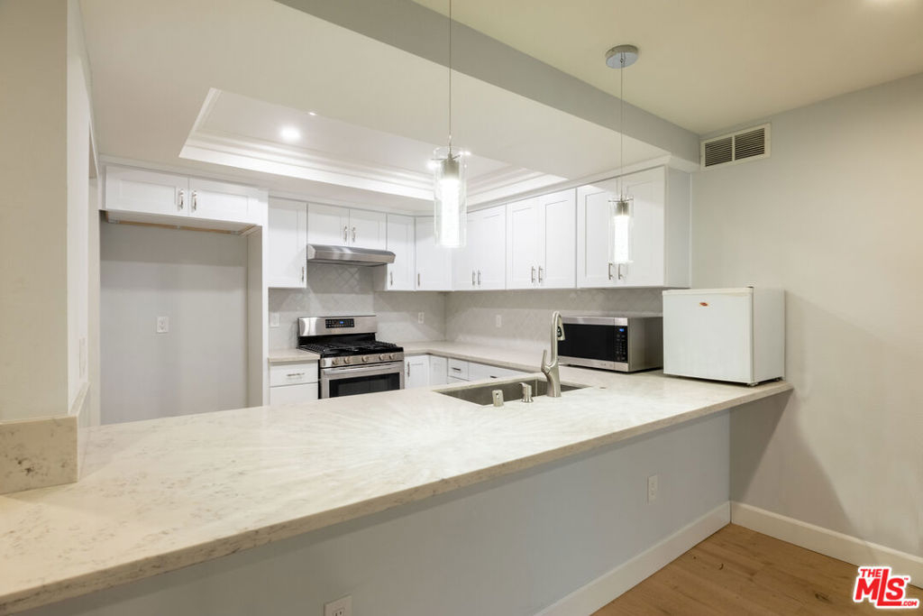 Location and Location!!!. Gated complex located in best and most safe neighborhood near Hancock Park and Koreatown. Garden style and courtyard complex in a quiet neighborhood. Inside of the unit has been extensively upgraded. Modern style kitchen cabinet with new countertop. Newly installed recess lightings all around. Both bathrooms has been also upgraded with new cabinets and flooring. Trendy style laminated wood floors all around the unit. Complex offers a pool in the middle of the court yard. Must see!!! Seller is in escrow for new location to move out. Must sell!!