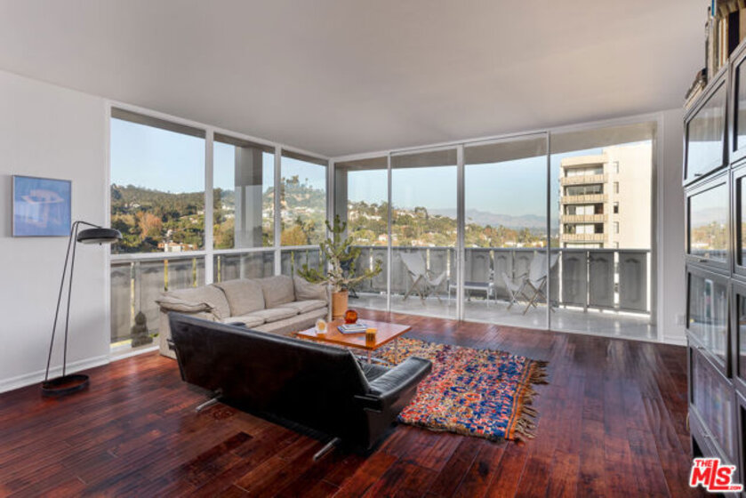 This elevated mid-century retreat offers the kind of sweeping Los Angeles views we all know and love but almost never get to live with. Residence 1002 at the iconic Los Feliz Towers feels like stepping quietly into a world lifted above the city, where the familiar skyline becomes an everyday backdrop. This rare 10th-floor corner unit transforms those seldom-experienced vistas into a lifestyle. Floor-to-ceiling glass opens to unobstructed northeast panoramas that begin at the Griffith Observatory, sweep across the lush hills of the park, and stretch all the way to Downtown LA and the snow-capped mountains beyond the glistening metroplolis. The generous layout flows with the ease of its era, anchored by a spacious den that could readily serve as a second bedroom. Thoughtful updates including cork flooring in the kitchen preserve the understated glamour of the building's mid-century roots. Set in the heart of vibrant Los Feliz, you're a short stroll to neighborhood favorites like Little Dom's, All Time, Alcove, and more. In a community prized for its privacy, amenities, and architectural pedigree, the true luxury here is the panorama itself: nature and city unfolding in every direction, reminding you viscerally that you have arrived.