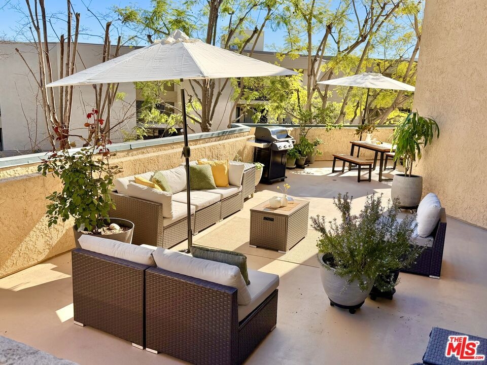 Sunny and spacious, designed for effortless indoor-outdoor living! This beautifully upgraded 3-bedroom, 2-bath condominium in the coveted Eaton Crest community offers treetop views from every room, and an exceptionally large private patio - a rare extension of the living space, perfect for al-fresco dining, entertaining, or everyday relaxation. The interior's open floor plan includes a formal dining area and living room that opens to the patio. The main en-suite bedroom with a large wall closet at the end of the hallway provides peace and privacy, while the second bedroom, currently used as a home office, also leads to the patio, enhancing the home's seamless indoor-outdoor flow. There is a versatile den/third bedroom at the other end of the hallway with a large walk-in closet and also direct patio access with a bistro table area for those moments after a long day at work. Both bathrooms have been tastefully updated with frameless shower doors, plumbing fixtures, vanities and fog-free vanity mirrors. Other upgrades are new flooring, a brand-new central A/C, and stylishly remodeled kitchen and baths. The chef's kitchen features quartz countertops, a glass tile backsplash, updated cabinetry, and new Samsung appliances/ refrigerator and dishwasher. Additional conveniences include in-unit Samsung washer and dryer, a private EV charger in the underground garage, and secured bike storage. The well-maintained, resort-style community features a sunny pool and jacuzzi, sundeck, recreation room, a private park with walking paths, and 24-hour security. Ideally located just minutes from Old Town Pasadena, the USC Health Sciences Campus and USC Medical Center, Highland Park restaurants, coffee places, yoga and shops, and easy accessibility to the 110 Freeway leading to downtown, the beaches, and all the best that LA has to offer. A rare, move-in-ready opportunity in coveted up and coming Monterey Hills, this one truly checks every box. Easy to show. Call listing agent.