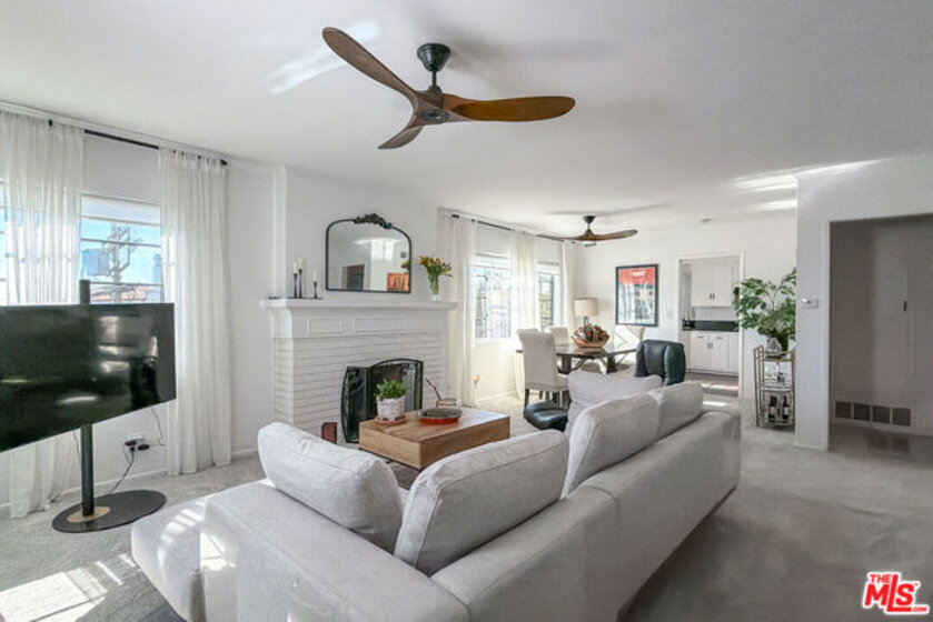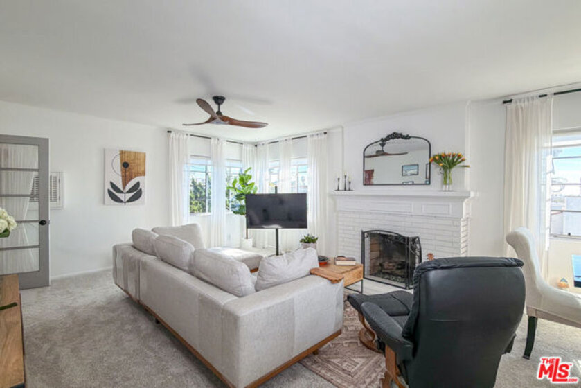 Welcome to 4507 Finley Ave #6 a top-floor Mid-Century gem with timeless style and modern ease. Built in 1957, the building's mix of brick, stucco, warm wood accents, and iconic ironwork sets the tone before you even step inside. This 1,090 sq ft residence is filled with natural light and anchored by a gas fireplace with a rich wood mantle. The layout flows beautifully, with generous storage in both bedrooms, the hallway, and a kitchen that keeps everything neatly in its place. Perched above it all, the south-facing unit enjoys open views and a bright, airy feel throughout the day. Down below, a lush, shaded courtyard offers a peaceful escape from the city buzz. Practical perks include two tandem garage parking spaces plus additional storage, making everyday living refreshingly easy. Set near Hillhurst and Finley, you're perfectly positioned to enjoy the best of Los Feliz from evenings at the Greek Theatre to weekends exploring Griffith Park. Downtown access and major routes are close, yet the neighborhood vibe stays calm and residential. Stylish, sunlit, and perfectly located, 4507 Finley Ave #6 is ready for its next chapter and its next owner. Come see it in person and fall in love.