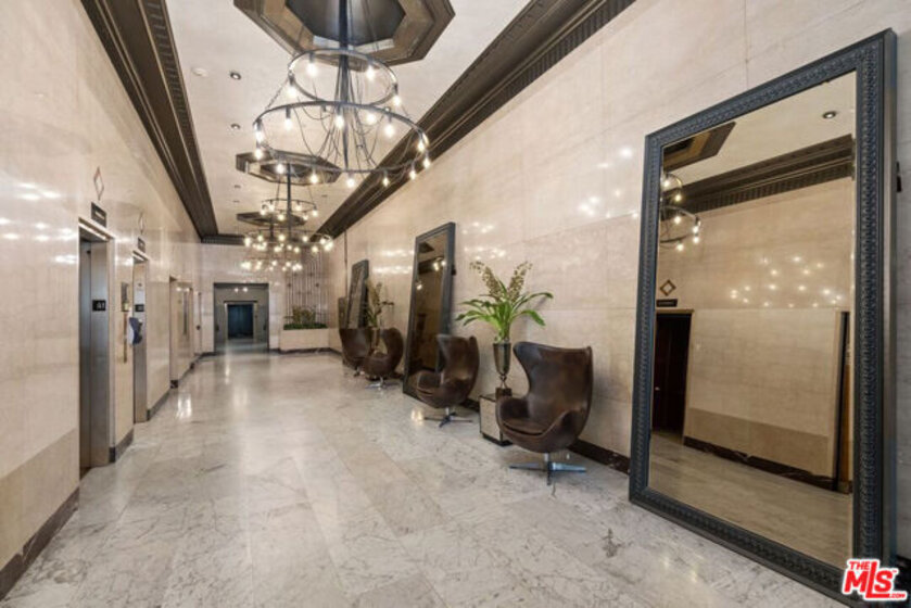 The historic Rowan Building Lofts is located at 460 S Spring Street, in the "Old Bank District" of Downtown Los Angeles (DTLA). This incredibly dramatic, top-floor, corner-unit condo offers classic architectural character paired with modern urban-loft style. Originally built in 1912 as one of DTLA's most prestigious office buildings, the Rowan was converted to loft-style residences under the City of Los Angeles' Adaptive Reuse Ordinance in 2006, and is known for its timeless Beaux-Arts design, grand lobby, and rich historic details. This unit features an open, loft-style layout with 12' high ceilings and large windows that flood the space with natural light, creating an inviting and functional living environment ideal for both daily living and entertaining, and has incredible cross-ventilation. Modern conveniences blend seamlessly with the building's historic charm, offering a true DTLA live/work lifestyle. Residents enjoy controlled access, on-site security, and close proximity to some of Downtown's most vibrant destinations, including the Fashion District, Arts District, Little Tokyo, and an array of restaurants, galleries, and nightlife. With easy access to public transportation and major freeways, this is an exceptional opportunity to own a piece of Los Angeles history in one of DTLA's most iconic buildings. Amenities include a second-floor lounge and community space, outdoor garden with jacuzzi and cold plunge, barbecue and seating areas. Residents enjoy 24-hour security, professional management, and significant property tax savings from the MILLS ACT.