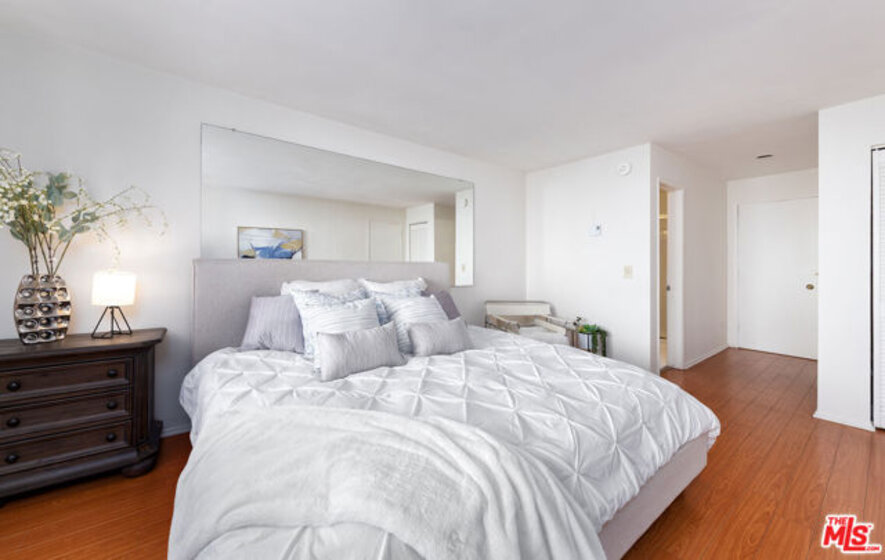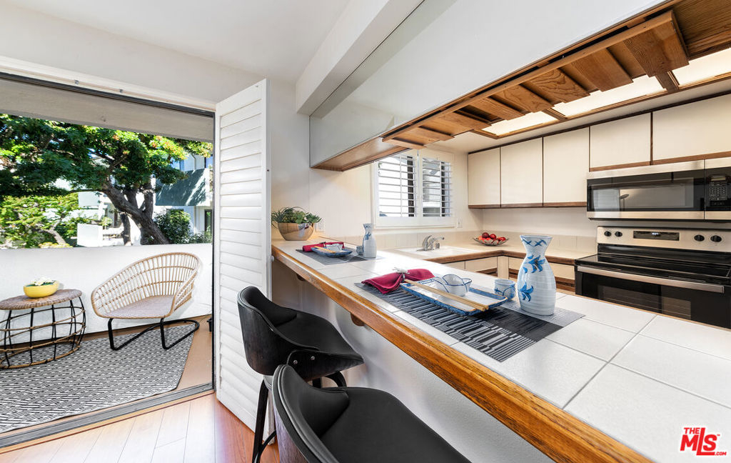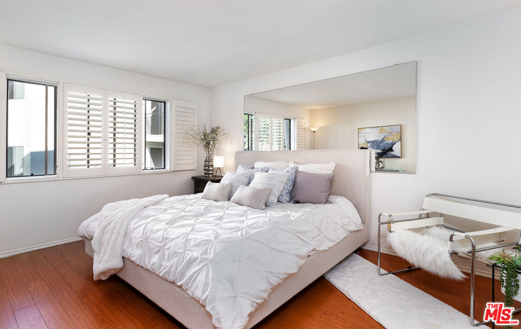 Beautiful, peaceful and serene 2 bedroom (2 Principals) + 2 bathrooms + 1 balcony + 2 parking spaces (not tandem)+ Open concept + Tree Top view+ Extra Storage + Close to Ballona Creek Bike Path ! There are several special features in this condo: 1) 2 principal bedrooms and one of them has a separate entry to the bedroom! Great for roommate situation or renting one of the rooms. You can keep one bedroom and a living area and totally isolate the other bedroom/bathroom. For a 1 bedroom buyers consider this one. Buy a 2 bedroom and use one side and have the second bedroom pays for itself. Once you need to expand your living space, you have 2 bedrooms. 2) This unit is facing the courtyard and it is very peaceful and serene. You don't feel you are in the middle of the city 3) Prime Location: bike ride to the beach using the Ballona Creek Bike Path, adjacent to Playa Vista, Marina del Rey and Culver City. Literally easy access to Tech hub, shopping, restaurants, LAX and more. Open floor concept, very spacious, light, bright and airy living area w/ breakfast bar. Large windows in the living room brings tons of natural light with the view of the courtyard, Tree tops and the pool. 4) This unit is conveniently located close to the community laundry and the elevator. Outdoor balcony flows from the living area and it is a peaceful spot to have a glass of wine or cup of tea/coffee. Each side of the living area you have 2 great size principal bedrooms. Each one with a bathroom and walk in closet. Custom Plantation Shutters in all windows/sliding doors. Great size kitchen with lots of storage. Extra Storage by the parking space. This condo is well designed with no wasted space. Amenities: Pool, exercise room, meeting room, sauna, hot tub, peaceful walk ways with Koi Ponds. Centrally located in the west side, close to Silicon Beach areas, Playa Vista, Marina del Rey, LAX, Santa Monica, Beaches, Culver City, shopping mall, all kinds of retails, restaurants, and Fwys. HOA includes many utilities: water, sewer and trash!