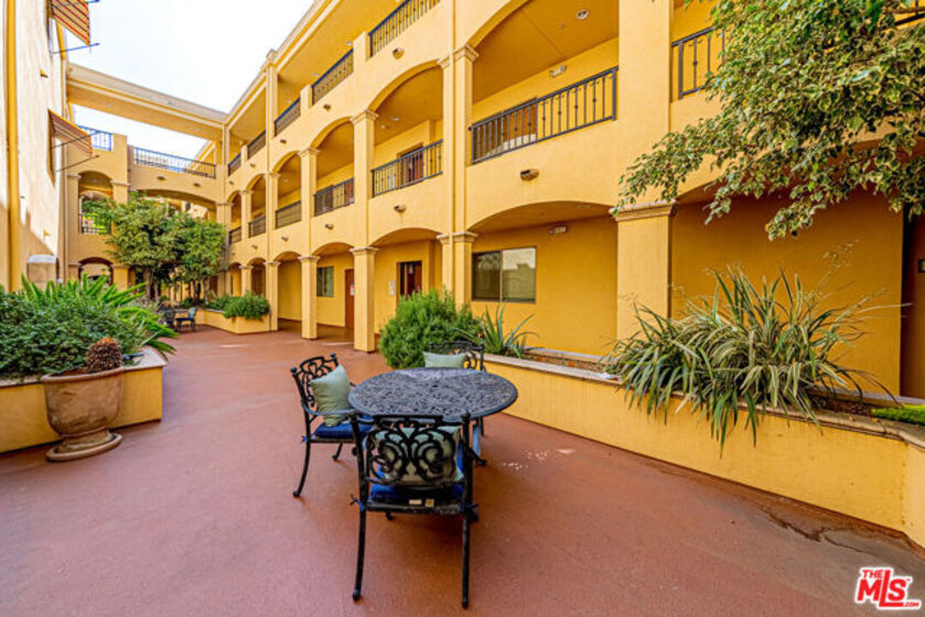 Stunning top-floor 2bed/2bath Spanish-style condo built in 2008!! Located near Hancock Park & Larchmont Village, this turnkey home features an open floor plan, soaring ceilings, and abundant natural light. The chef's kitchen offers a skylight, granite counters, and stainless steel appliances, flowing into the dining and living areas with a private balcony and cozy fireplace. The spacious master suite includes a walk-in closet, two extra wardrobes, and a luxurious bath with soaking tub. Additional highlights: rustic maple hardwood floors, in-unit laundry, and secured 2-car parking with guest spaces. Meticulously maintained in a quality building. HOA covers water, trash, landscaping & common areas. Don't miss this rare opportunity-this condo will not last!