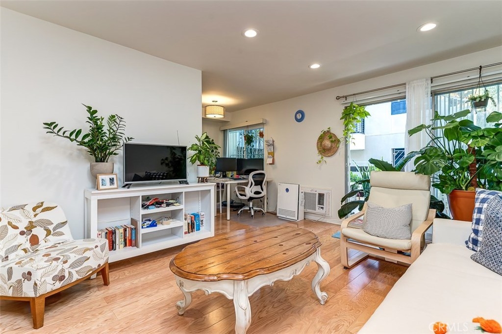 This beautiful condominium is located just two blocks north of Wilshire in Koreatown. This corner unit has a large spacious patio and bathroom, kitchen, vinyl sliding windows, hardwood flooring, and the electric box has been renovated last year. The spacious living room has recessed lighting. The recently remodeled kitchen has brand new appliances. All attached appliances as well as the refrigerator are included in the sale. There is new hardwood flooring throughout the home. Within walking distance from shops and markets with many restaurants near by as well as the Metro Red line and other forms of public transportation. This area is well suited to enjoy city life. This is a must see, well maintained condominium.