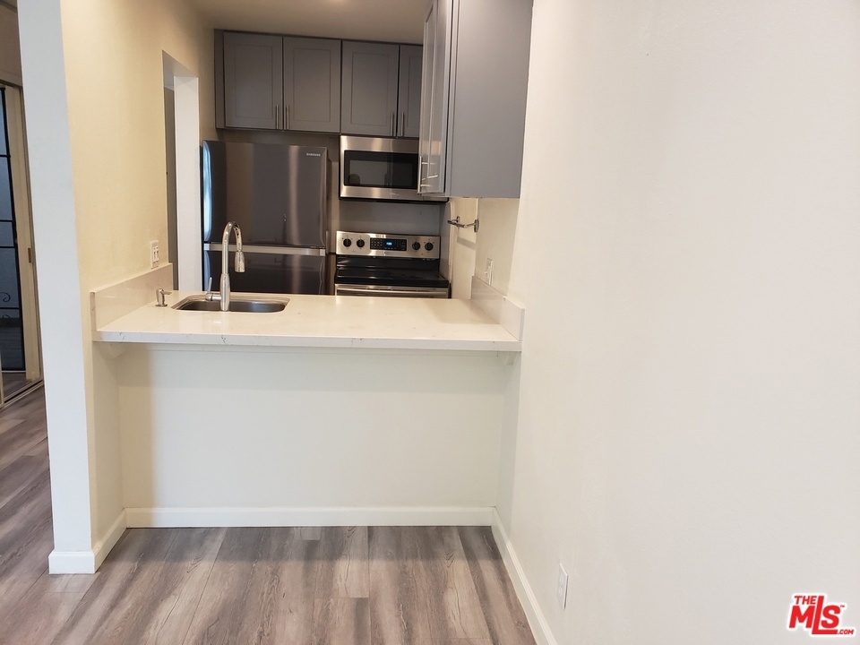 Spacious and private studio condo updated with modern kitchen, new stainless steel appliances, walk in closet, separate storage closet, recessed lighting, laminate flooring. Well maintained building with garden-like settings, fountain/water fall, gym, dry sauna and jacuzzi. Amenities include community laundry facilities, conference room, 24 hour security with security guard at night, assigned parking space. Located in the heart of Koreatown this condo is a must see. Ideal for quiet work-at-home creative setting with top floor unit and only one common wall. Near downtown, Wilshire Boulevard and transportation. This is a must see and will not last.