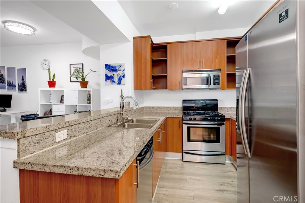 Gorgeous 3rd Story CONDO with BALCONY and ROOFTOP POOL! This beauty features fresh interior paint, sleek wood floors, and more! Marvel at the abundance of natural light upon entering! Kitchen boasts stainless steel appliances, granite counter tops, breakfast bar, and ample cabinet space! Living room flows seamlessly from kitchen and adorns a cozy fireplace, perfect for those cooler months! From the living room, make your way onto the expansive balcony, a wonderful spot to enjoy your morning coffee! Both bedrooms showcase a full bath, walk-in closet, and plenty of space! Additional perks include 2 covered parking spaces, community gym/sauna, and rooftop access. Close proximity to Metro station, Koreatown, eateries, shops, schools, and so much more! This gem truly has it all and is a MUST-SEE! Request a showing before it’s too late!