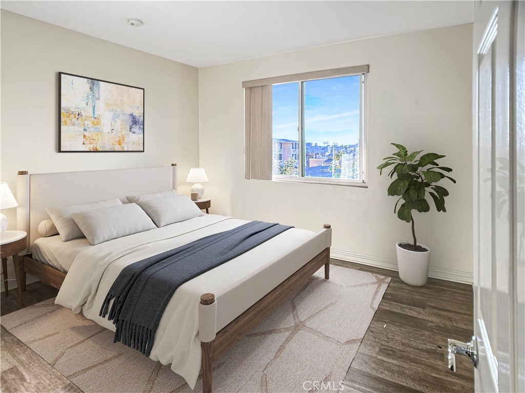 Experience modern urban living at 620 South Gramercy Place, Unit 402 in the heart of Los Angeles. This top-floor corner unit offers 2 bedrooms, 2 bathrooms, and 1068 square feet of bright, natural light-filled space. Step out onto the balcony for a stunning view of the city or utilize the spacious den upstairs as an office or additional living area. The newer hardwood floors add a touch of elegance to the open layout. Enjoy the convenience of an elevator, gym, pool, and laundry in the building, along with the comfort of air conditioning. The kitchen comes complete with a refrigerator, and parking is included. This pet-friendly, unfurnished residence provides the perfect blend of modern amenities and urban convenience. With its prime location and stylish features, this home offers an ideal urban living experience. Embrace the vibrant city life and schedule a showing today to make this modern retreat your own. This is a probate sale. No court confirmation needed.