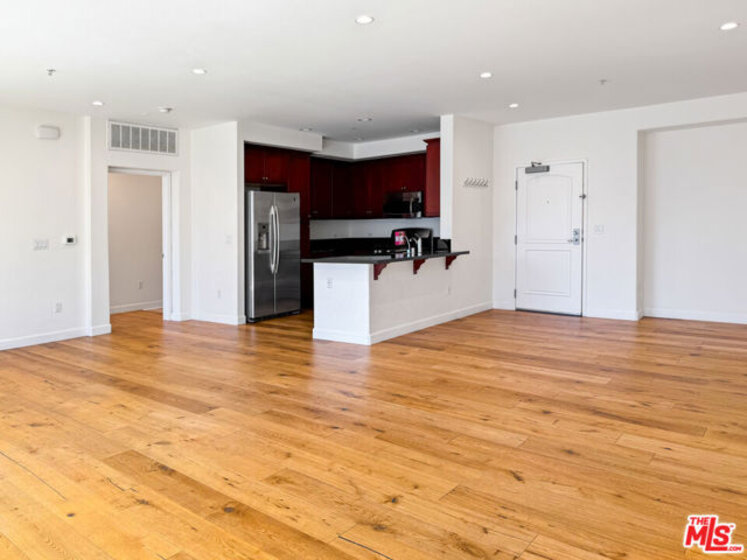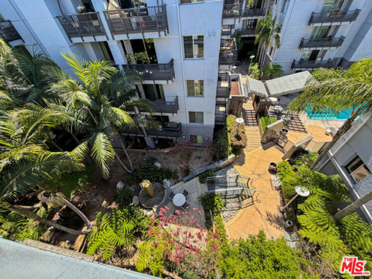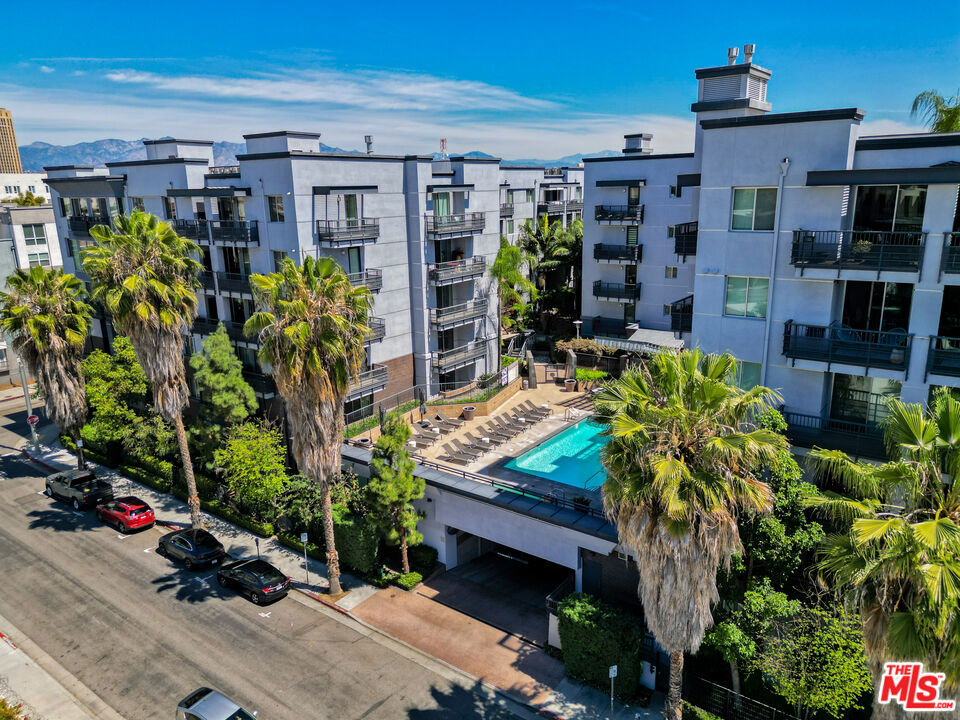 Rise above it all in this top-floor penthouse residence at Mura, one of the Arts District's most coveted residential communities. Positioned right at the heartbeat of one of Los Angeles' most vibrant neighborhoods, where you'll find artisan coffee on almost every block and Michelin-star rated restaurants next to art galleries, this light-filled 2-bedroom, 2-bath home offers the ideal blend of modern comfort and urban energy. The expansive open-concept living space is bathed in natural light, with dual sliding glass doors that open to an oversized private balcony overlooking a lush courtyard, palm trees, and the resort-style pool below. The seamless flow between the living, dining, and kitchen areas creates an ideal setting for both everyday living and entertaining. The kitchen is appointed with rich cherry cabinetry, dark granite countertops, stainless steel appliances, and a breakfast bar perfect for casual dining or hosting. The spacious primary suite features a walk-in closet and a spa-inspired bath with dual vanities, a soaking tub, and a separate glass-enclosed shower. A well-proportioned second bedroom and full bath offer flexibility for guests, a home office, or additional living space. Additional highlights include full-size in-unit laundry, central A/C, and the convenience of top-floor living with no neighbors above. The unit comes with 2 tandem parking spaces in the gated, subterranean parking lot. The spaces are located directly next to the elevator, which is extremely convenient. Mura offers a true resort-style experience with 24/7 security, amenities that include a pool, spa, fitness center, outdoor lounge areas, BBQs, fireplace, 24-hour controlled access of all doors and elevators via a mobile app, and gated subterranean parking. Located just moments from some of the city's best dining, artisan coffee, and culture, you're within close proximity to Little Tokyo, the Metro, and neighborhood favorites like Bestia, Urth Caffe, Damian, Bavel, Girl & The Goat, Verve, Hauser & Wirth, and Arts District Brewing. With penthouse privacy, abundant natural light, full service amenities, and a neighborhood that has everything to offer, this is urban living at its best.