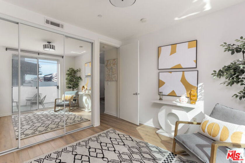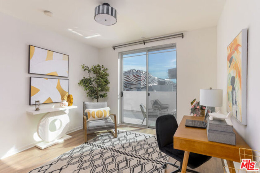 Gorgeous contemporary Miracle Mile condo located on one of LA's most iconic corners. Fairfax and Wilshire, across from LA's "Museum Row" which includes the LACMA, the Academy Museum, Petersen Automotive Museum, "The David Geffen Galleries", and the new Fairfax and Wilshire metro stop. The Grove and 3rd Street dining and shopping are only a few blocks away. The building was recently renovated, and the unit itself flows wonderfully and offers a spacious living and dining area. It is the only unit in the building with an enormous wrap-around balcony, with entrances from every room. Enjoy your morning coffee or a California sunset from your private outdoor living lounge. This 2-bedroom, 2-bath unit has been thoughtfully updated with new LVP floors, upgraded appliances, and fresh designer paint throughout. The primary bedroom offers a generous walk-in closet and an opulent en-suite bathroom with a marble bath/shower. The 2nd bedroom and bath are located on the opposite side of the unit, giving your guests optimal privacy. There is also a stacked washer and dryer in the unit, double-pane windows and doors, and two secure tandem parking spaces. The building has a rooftop deck with BBQ and 365-degree views of the city. Other amenities include a Butterfly MX access system, an EV charging station, and an Amazon locker for packages. Don't miss this one, will NOT last!