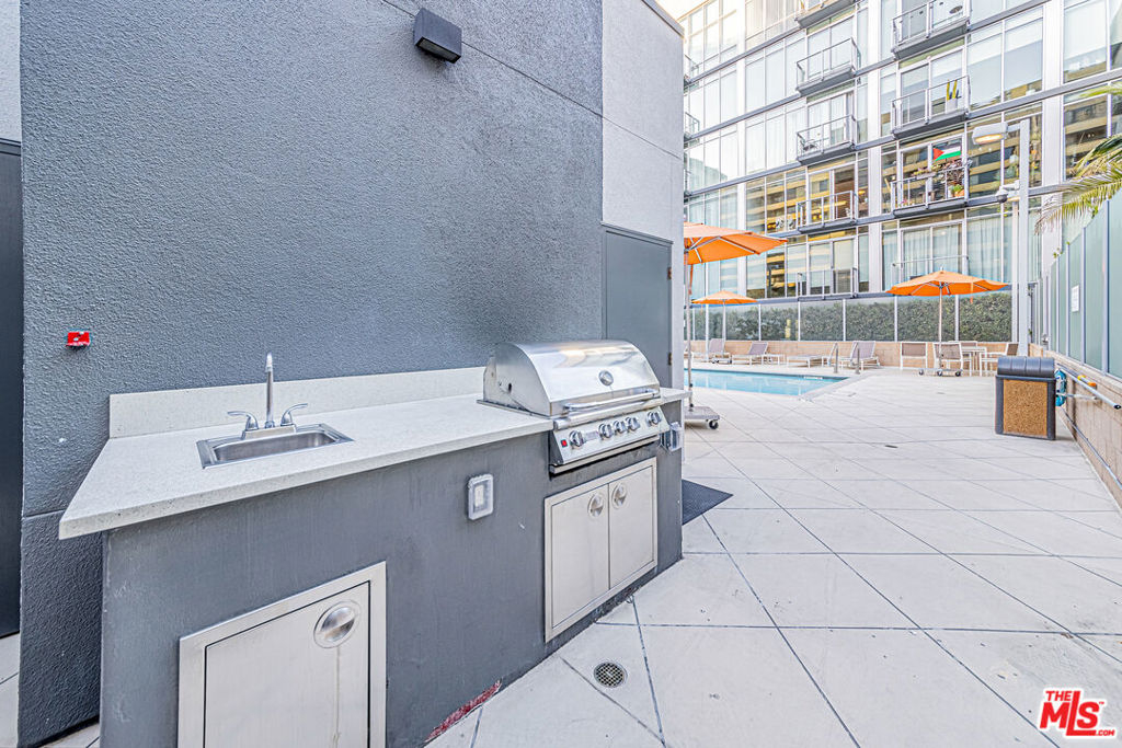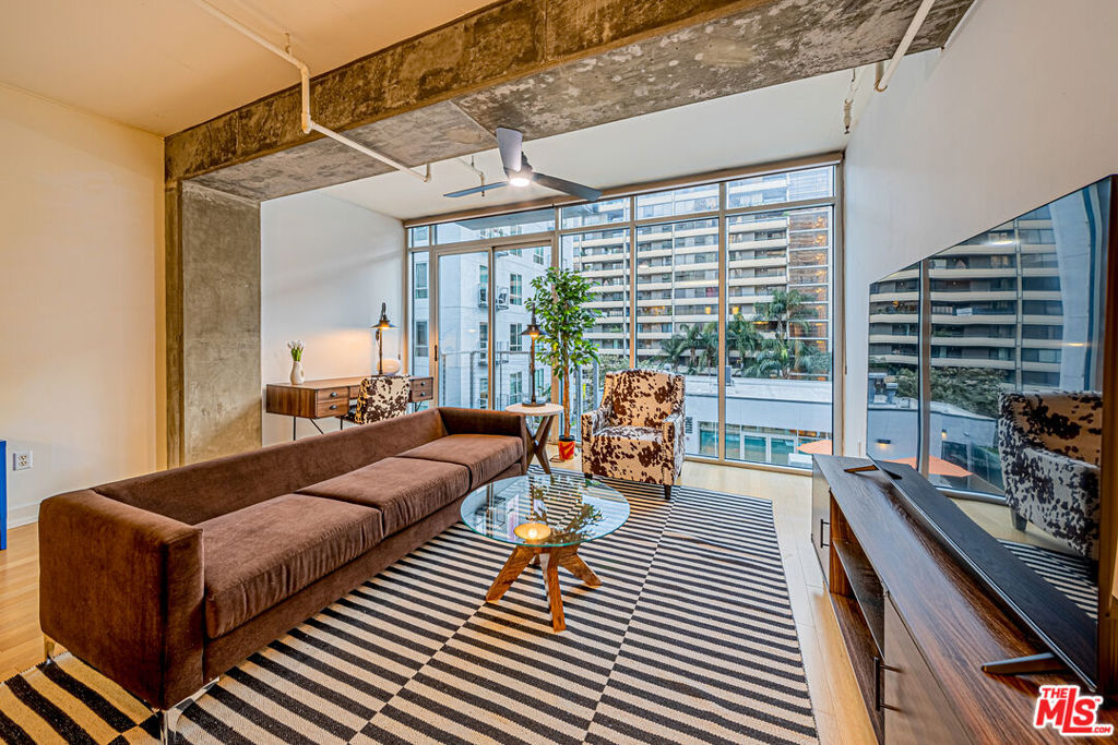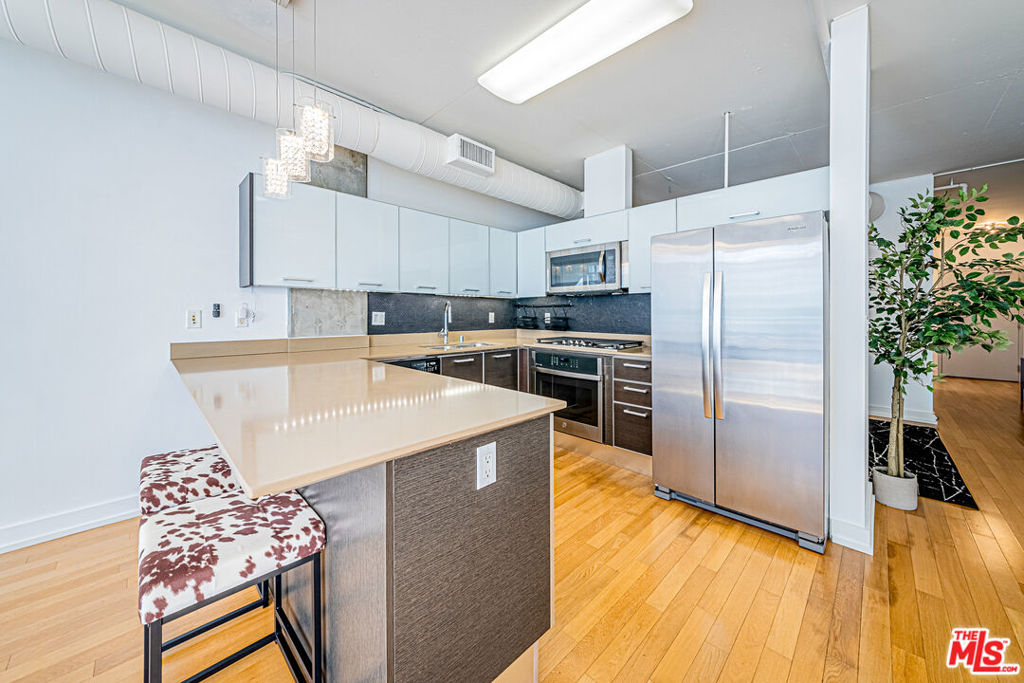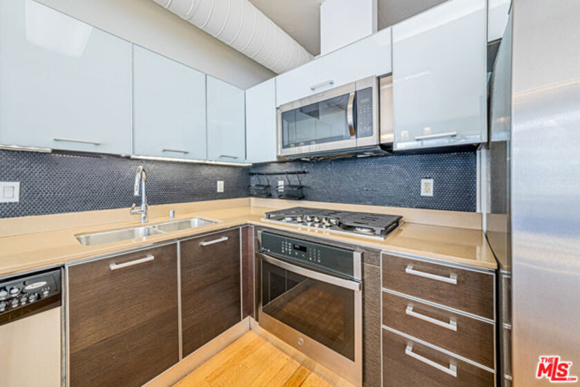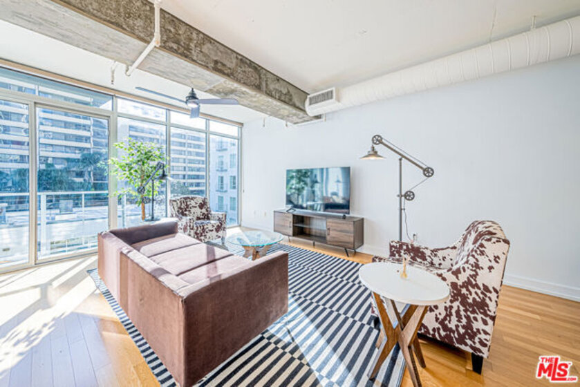 Sunlight streams through the expansive floor-to-ceiling glass windows of this meticulously maintained, spacious one-bedroom loft nestled in the heart of South Park. Situated within Market Lofts, this unit boasts one of the largest one-bedroom layouts and features an appealing floor plan. As you step inside, engineered hardwood floors guide you down a lengthy, freshly painted entry hall, leading to an alcove bedroom with a generously sized walk-in closet on your right. The well-appointed chef's kitchen showcases stainless-steel appliances, including new state-of-the-art oven and new gas cooktop, and offers ample cabinet storage. This unit also features newly installed window treatments. The living room is both functional and beautiful, providing a space for work or relaxation. Step out onto the balcony to enjoy fresh air and sunshine while overlooking the pool area. Market Lofts also offer amenities such as a BBQ grilling station, resident's lounge with a full kitchen and billiards table, screening room, fitness center, package storage lockers, and massive loading dock. For added peace of mind, there's onsite management and 24-hour security. The location is unbeatable, situated above Ralph's and just blocks away from Whole Foods, Target, The Bloc, Macy's, FIGat7th, FIDM, LA Live, Crypto.com Arena, Mastro's, Capital Grille, trendy Proper and Hoxton Hotels and so much more!