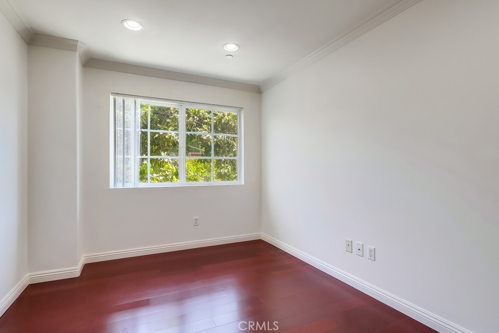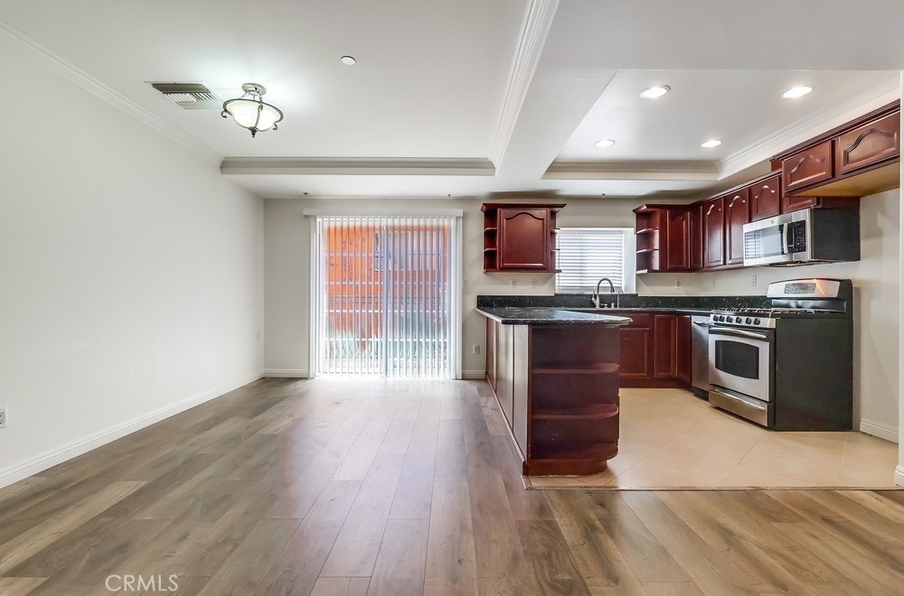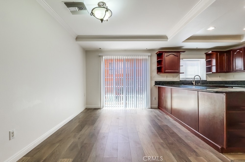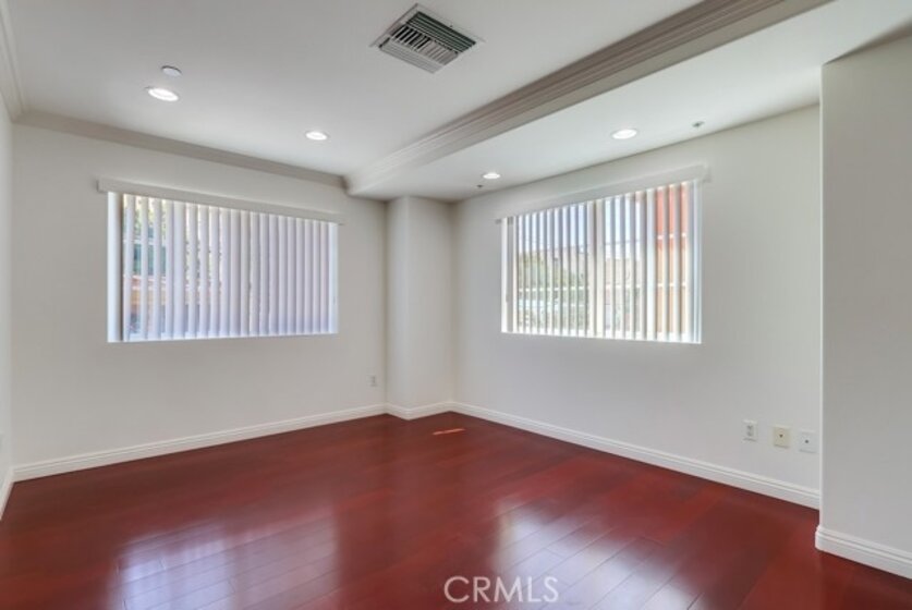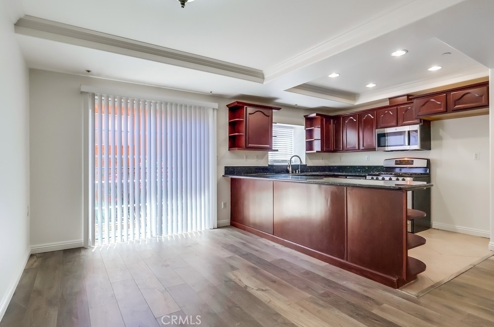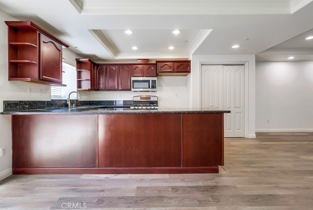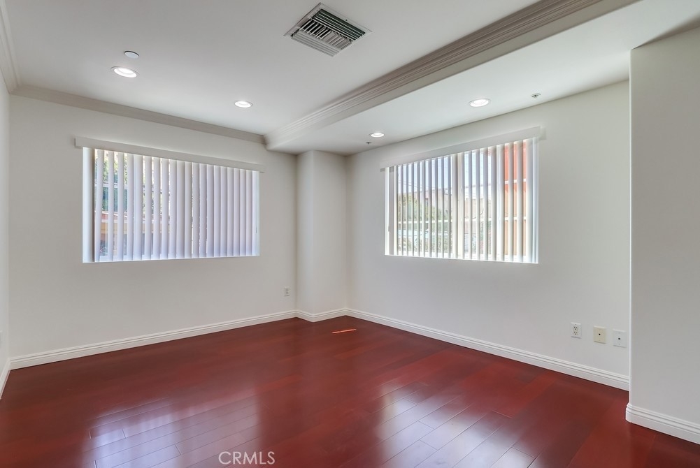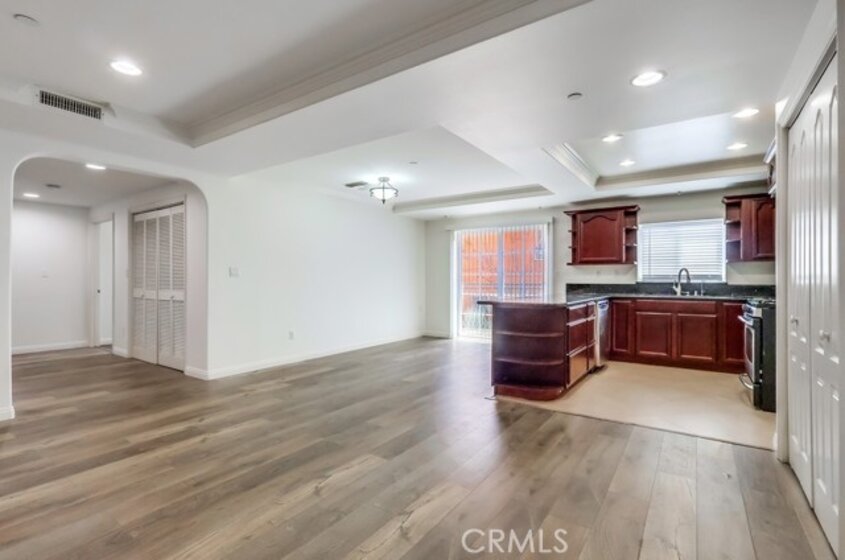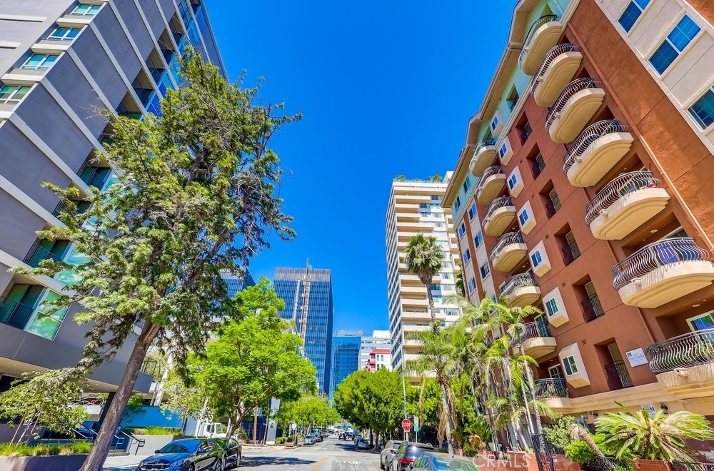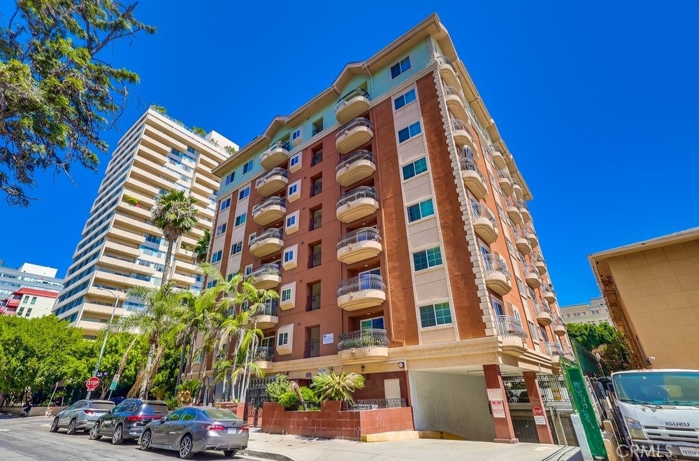 Discover the perfect blend of comfort, style, and convenience in this spacious 2-bedroom unit, ideally located in the heart of the Mid-Wilshire Financial District. Flooded with natural light from multiple windows and two balconies, this well-maintained condo offers an open floor plan with gleaming cherry wood floors, laminate and stone, crown molding, and a cozy fireplace. The dining area opens to a balcony with beautiful views, while the wide hallway leads to a versatile den/office, or third bedroom, a full guest bath, and in-unit laundry with side-by-side washer and dryer hook-ups. The primary suite features a large en-suite bath with jetted tub, while the den’s sliding doors open to a second private balcony—perfect for fresh air and relaxation. The home also boasts abundant storage, granite countertops, recessed lighting, and central air/heat. Set in a boutique 35-unit building with solid construction, residents enjoy modern amenities including solar panels, EV charging stations, a recreation room, gym, secure access, gated garage parking, and guest parking. All this just one block from the Wilshire corridor’s dining, shops, the Metro, the LINE Hotel, and more. A rare opportunity to own a serene retreat in a vibrant urban setting!
