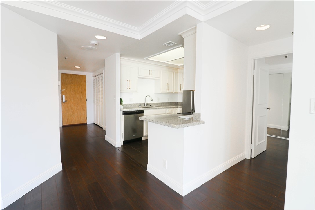 LOCATION!!! Very well-kept condo in Mid-Wilshire business district, and in the heart of Korea Town. Close to markets, restaurants, and shopping centers. This unit features completely upgraded kitchen cabinets, stainless steel appliances, and granite counter tops. Nice size master bedroom, master bathroom has separate tub, shower, his and her sink. HOA includes a gym, sauna, pool, water and trash. 2 assigned parking spaces in basement. EV charging stations are also available (call HOA to sign up). New flooring, base/crown moldings throughout the unit. This quiet corner/end unit boasts a fabulous westside city view, only one common wall, and ready to move-in.