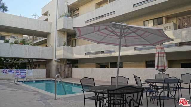 Enjoy city living in this cozy condo in thriving and booming Koreatown. One bedroom, one bath top floor unit with sunny, southern exposure. Dual mirrored sliding door closets in bedroom with direct access to enclosed balcony which is perfect as an office, hobby room or guest sleeping area. Relax in the soothing living room and take in scenic downtown skyline views from the balcony. Dining area and breakfast bar has a pass-through that connects the living area to kitchen. Building amenities include laundry room and rooftop barbecue area conveniently on the same floor, swimming pool with patio tables and atrium-style courtyard on the first floor, exercise room in the basement. Unit comes with two tandem parking spaces in gated garage. In minutes, you can walk to grocery, pharmacy, authentic Korean restaurants, trendy cafes, public library, live music venue, night clubs, golf range, fitness center, bus and subway transit lines. Great for commuting to downtown, Hollywood, USC.
