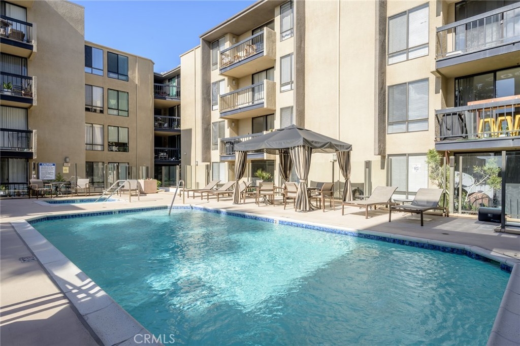 Welcome to the Hollywood Regis! Situated on the border of Hollywood and West Hollywood this resort style community is walking distance to many trendy restaurants, shops and bars. This unique Junior 1-bedroom is move in ready with fabulous panoramic city views from the private balcony, an open floor plan with updated finishes, stainless steel appliances, large walk-in closet with built-ins and combo washer/dryer unit. Amenities include controlled access, 2 TANDEM PARKING SPACES IN A SECURE GATED COMMUNITY GARAGE WITH EV CHARGING PLUS GUEST PARKING, assigned storage unit, pool, spa, cabanas and a fitness center!