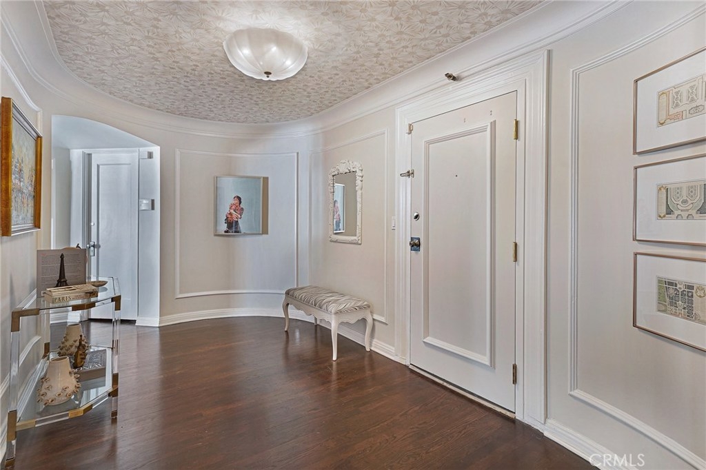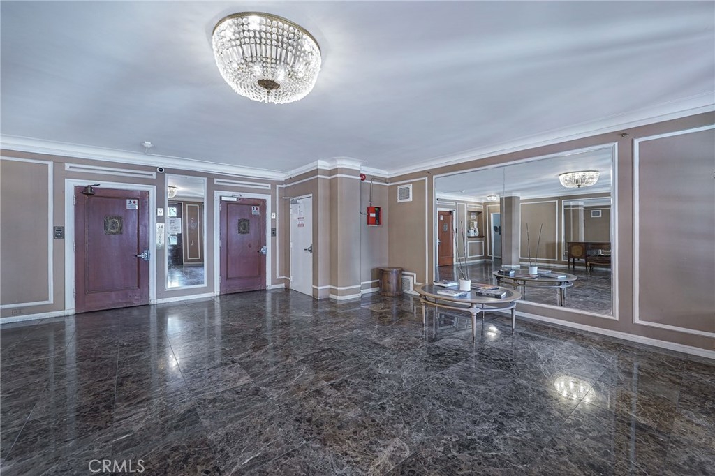Chateau Chaumont is a beautiful 1928 Historic French Revival building in the heart of Ktown. Shopping, restaurants, The Wiltern are all within walking distance. This beautiful 2nd floor corner unit offers 2 large bedrooms, including a primary suite w/ a private 200 sf balcony. Both bedrooms have walk-in closets. This elegant home is the perfect combination of unique historic details combined w/ modern amenities. Ebony-stained original hardwood floors & 9' high ceilings. The walls have gorgeous picture-frame molding & original crown molding. The entry consists of a dramatic oval foyer w/ whimsical wallpapered ceiling. A spacious formal dining room & light-filled living room features an exquisite decorative fireplace w/ a French plaster mantle. The galley kitchen has been recently upgraded to include Bertazzoni & Bosch appliances, Carrara marble countertops, Walker Zanger backsplash tile, an LG washer dryer combo, new Rohl sink, Newport Brass faucet & Smith & Noble custom window shade. Modern upgrades include soothing interior colors, Mitsubishi Ductless mini split AC/Heat system in dining room & bedrooms, custom window shades in bedrooms from The Shade Store & Smith & Noble. +2 secured parking spaces. The building also has a rooftop deck & additional storage unit on the top floor. Truly a unique property. Chateau Chaumont is a Mills Act approved building & has been used many times as a filming location which can offer owners additional income should they choose to participate