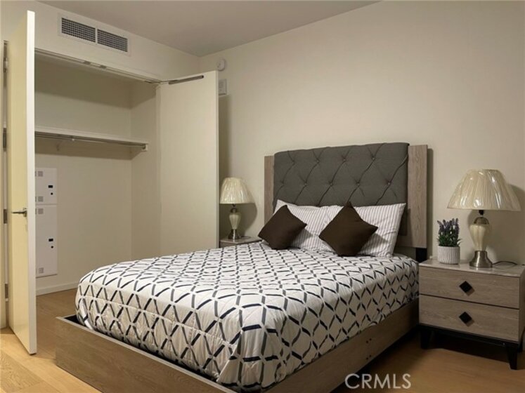 Rare opportunity to purchase a fully furnished unit in the new luxury Metropolis High Rise Condo Tower II with rare to find large balcony. This unit featuring custom built cabinets, soaking bathtub, laundry and washer and dryer in the unit, impeccable city views and great amenities for enjoyment includes 24 hours security, resort style pool, fitness center, garden, firepit, relaxation area, billiard room, dog park, theatre room, business center, and special access to Hotel Indigo's dining and lounge which is right next door. This special benefit at Hotel Indigo also great for when you have guests, but are still able to enjoy your own home without the hassle of hosting and giving up your personal space.. Location is unbeatable with easy access to 110,10,and 101 freeway, this complex is also very close to Crypto.com arena, and all the famous districts and restaurants at your grasp.