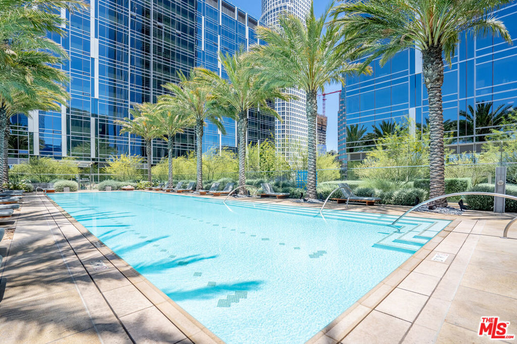 NEWER LUXURY CONDO, RARE UNIT WITH BALCONY - It's one of the very few units at this building with a balcony and with these views, it's definitely a special one. Ideally facing west to capture stunning sunset views and a gorgeous cityscape, Residence 1116 at the popular Metropolis II Towers offers an exceptional living experience. As one of the most magnificent high-rise condominium buildings in Los Angeles, this residence welcomes you with guarded security and an impressive lobby featuring soaring ceilings, attentive concierge service, and sophisticated finishes that set the tone for this urban oasis. Upon entering Residence 1116, you're immediately greeted by breathtaking west-facing views that flood the space with natural light. A convenient coat closet and powder room lead you into a beautifully designed open-concept kitchen, dining, and living area, perfect for today's most discerning buyer who values seamless entertaining and modern living. Step onto your private terrace off the living room and immerse yourself in panoramic city views while savoring your morning coffee or evening wine. This is your personal retreat above it all. The generously sized bedroom features two thoughtfully designed closets: a walk-in and an organized shoe closet with shelving. The luxurious ensuite bathroom showcases elegant stonework surrounding the tub and a sleek floating vanity, creating a spa-like atmosphere. At just under 1,000 square feet, this condominium delivers the perfect balance of luxury and livability. To add, there is great closet space in this particular plan and that is an important item for many. There is a double door coat closet in the entry, there's a storage closet in the living room, two closets in the bedroom, and there's another storage closet in the powder room. The building's exceptional amenities elevate your lifestyle with a sophisticated club room, billiard room, business center, fitness facility, resident lounge, and locker rooms complete with steam room. The outdoor amenities are truly spectacular: a stunning glass-walled outdoor kitchen, resort-style pool, hot tub positioned to capture those mesmerizing west-facing city views, dog park, children's playground, beautifully landscaped park areas, and inviting sitting spaces throughout. This is truly a place you'll be proud to call home. The location is unbeatable as you'll be surrounded by incredible dining destinations including the new Javier's and Mastro's, with convenient access to Whole Foods and the highly anticipated Erewhon Market opening in 2027. Cultural attractions like the renowned MOCA, The Broad, and Walt Disney Concert Hall are just moments away. Make your appointment today. This exceptional residence won't last long.